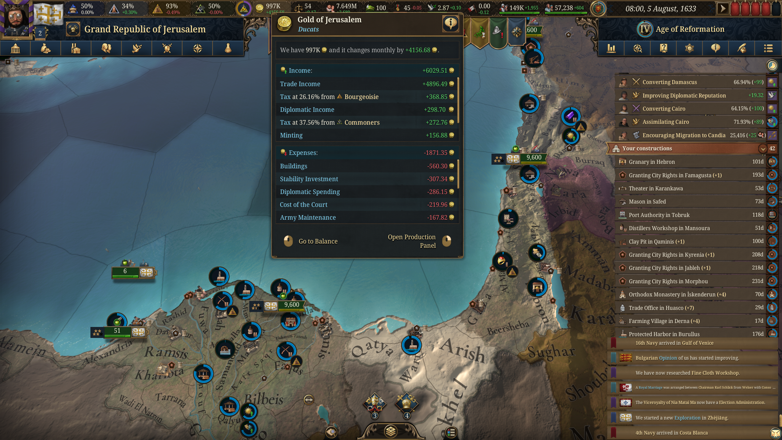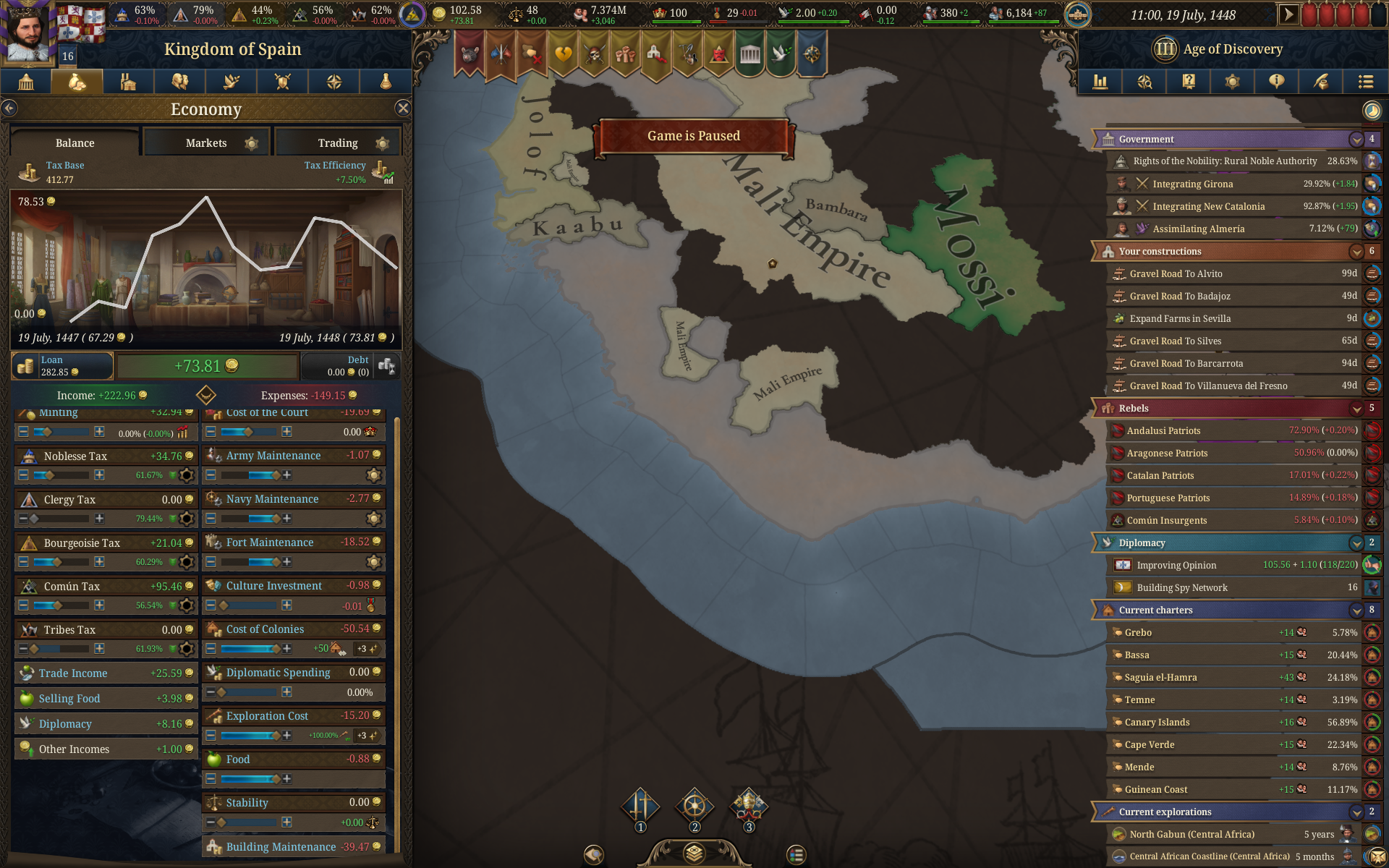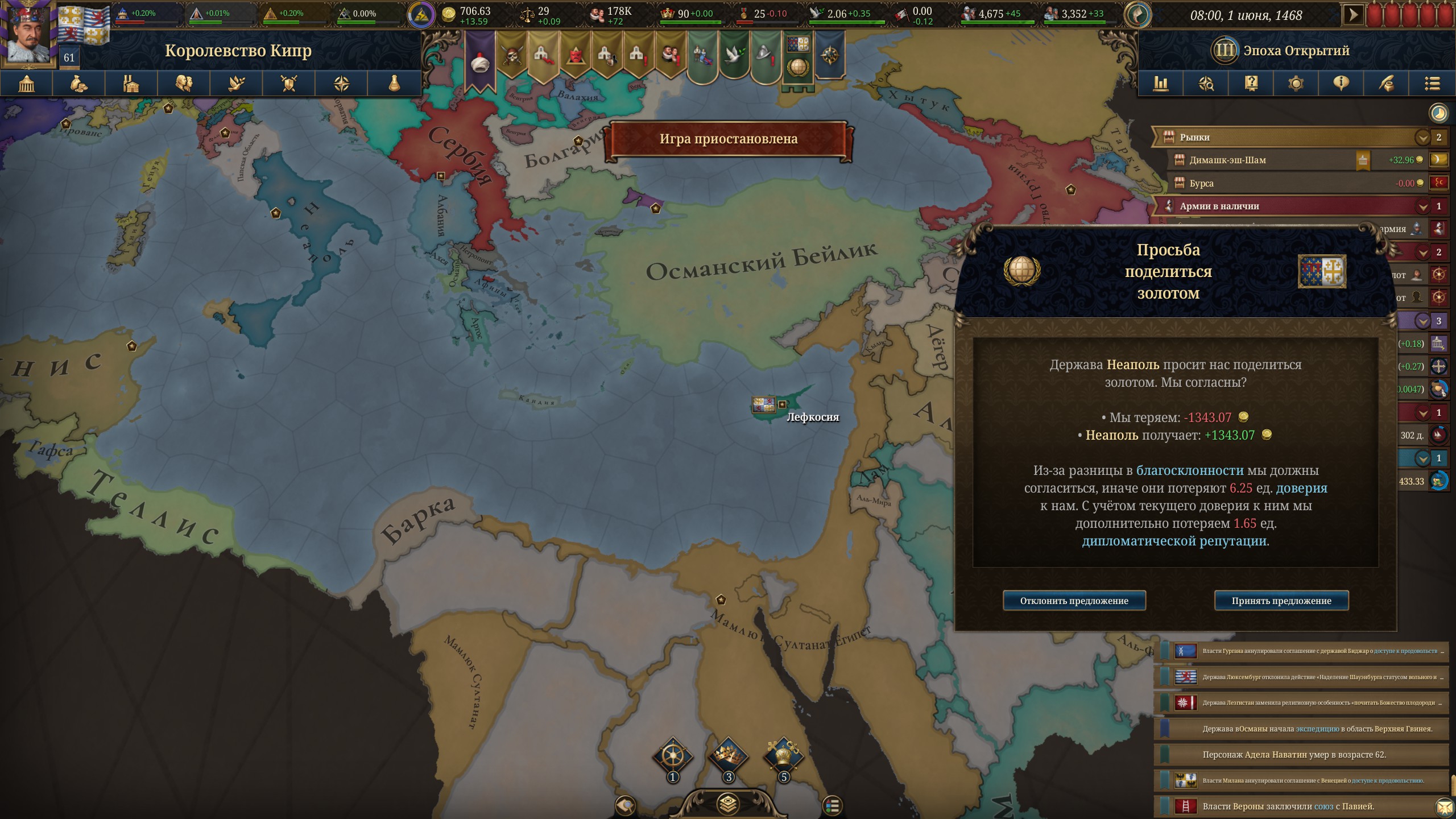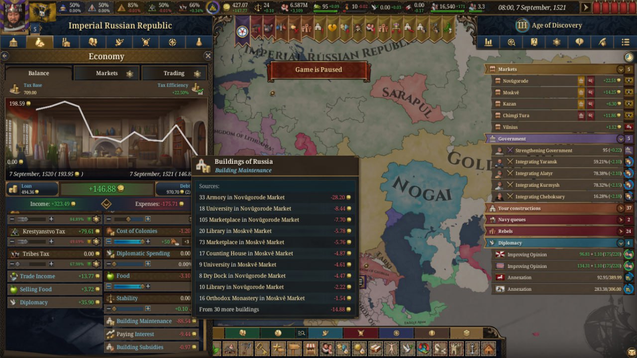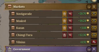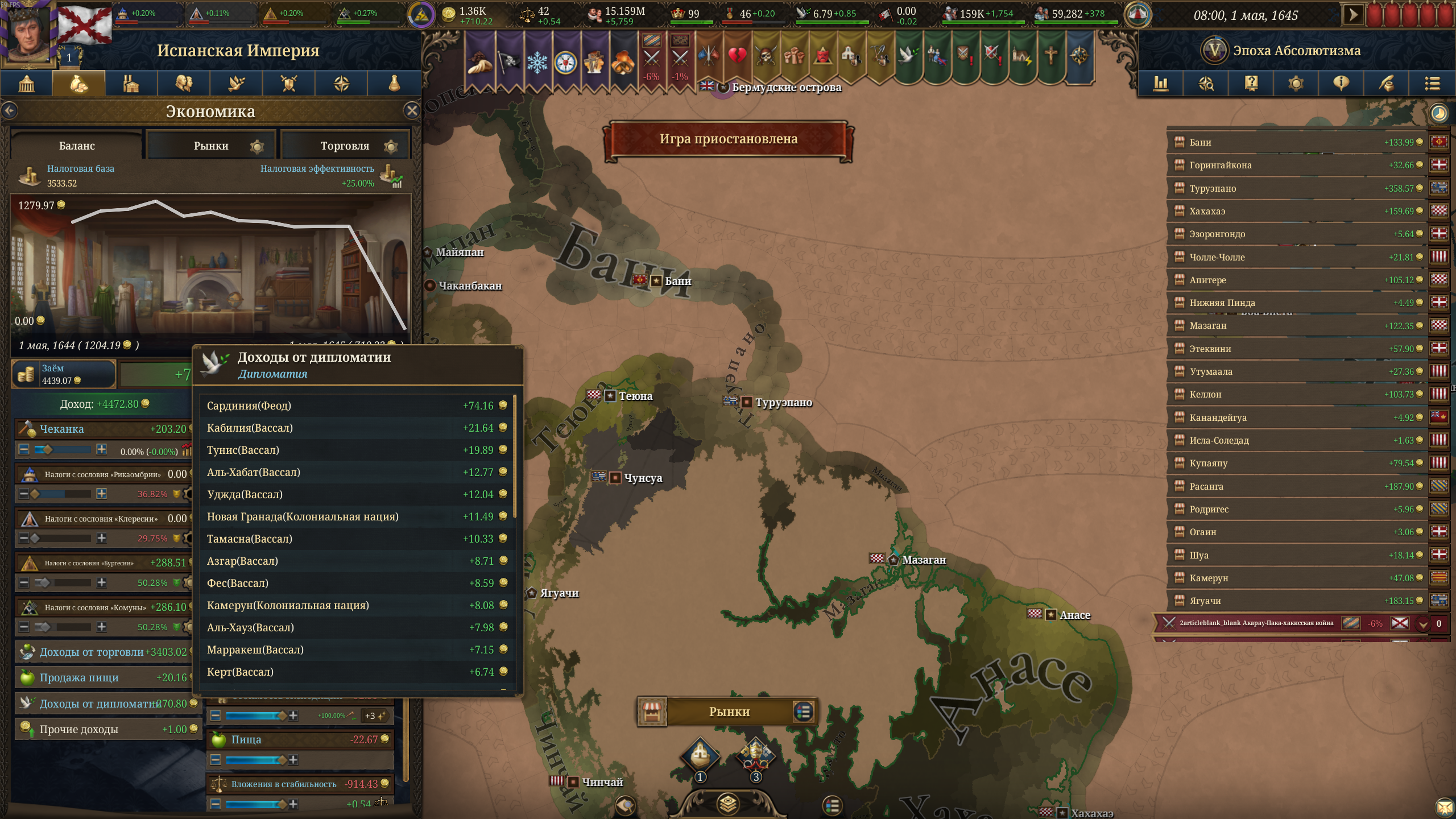 Нормально я присоединил вассала (всего 9 районов) со своим рынком, и мой доход упал с 100 до -20. Еще ии куда-то всадил 1000 (ничего не строится), пришлось брать кредит и теперь я третий месяц пытаюсь вылезти из говна