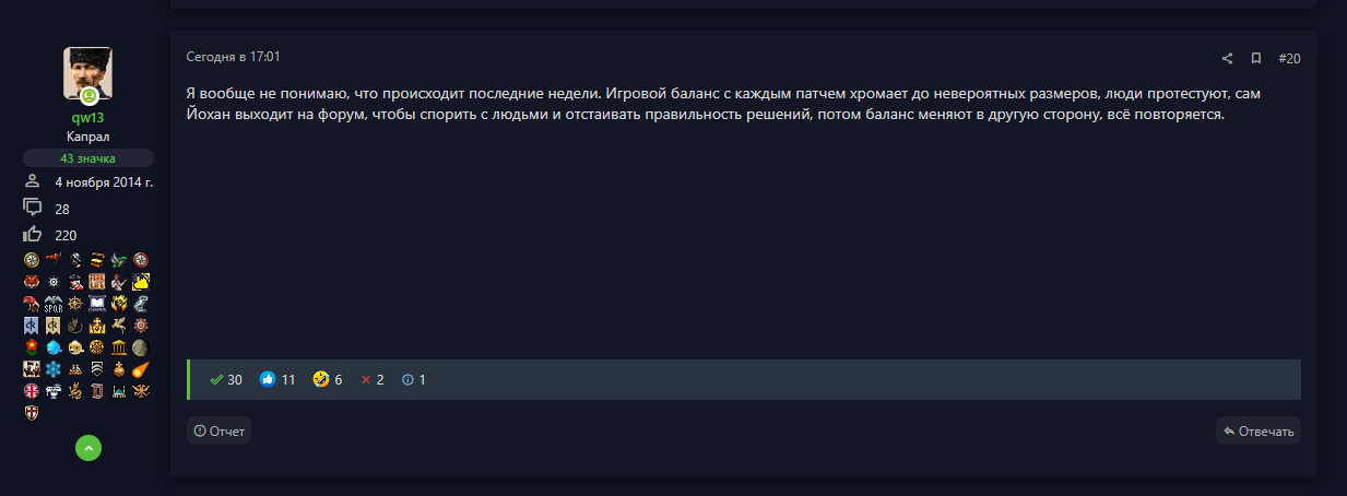 Прикиньте Йохан такой с ебалом пепе каждую неделю «так какую бы шизоидную хуйню сейчас высрать в патче, я же им обещал каждую неделю выдавать жидкого в ротешник». И потом такой хоба, ломает что-то нормально работающее превращаю его в говно, а потом следующим патчем отменяет изменения взад. Колесо генотьбы.