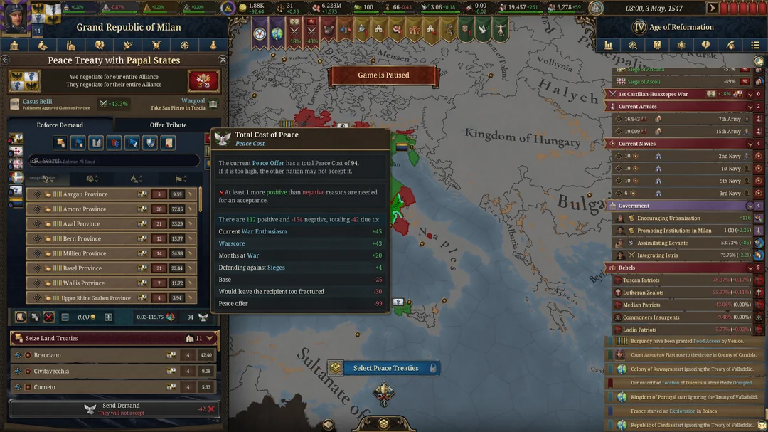 >>50483101 >>50482182 >>50482897 Ну вот тебе два скрина, один за мажора, там всё капитально просранно в плане баланса. Второй за минора еще и вассала, еще в прошлом треде был игрок на Гранаде, он там тоже нихуёво со своих трёх провок выжимал.