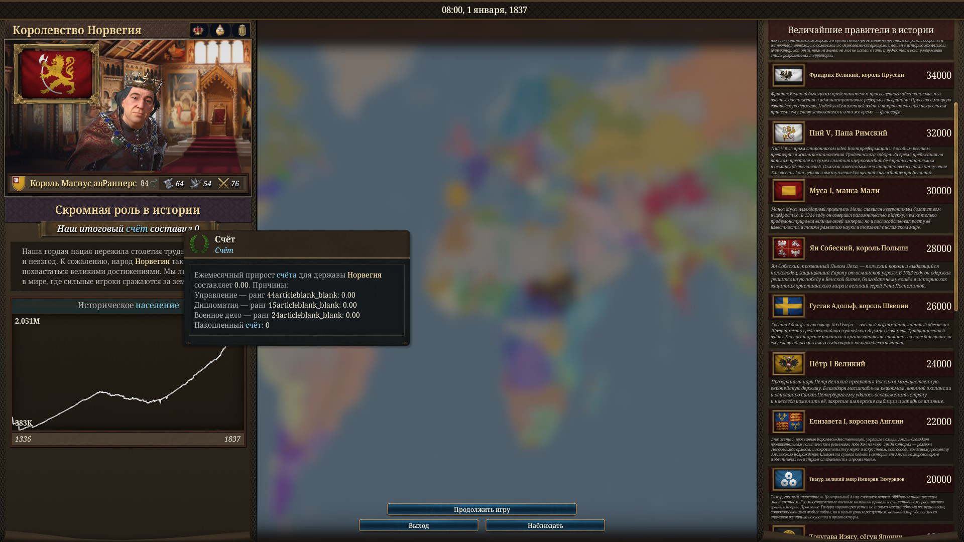 Что надо сделать шведским куколдинго, чтобы я вернулся в их игру все пункты касаются региона России, остальные мне не интересны: 1)Ивент на перенос столицы в Петербург, который бы давал зеленые плюсики, слегка компенсирующие нулевую досягаемость и заморозку построек каждую зиму. А так же открывал бы цепочку особых для Петербурга ивентов, вроде постройки зимнего дворца. 2) Несколько ивентов на ослабление орды. Появление Тамерлана в 1390х, который ослабит им армию и отделит от них восточную половину, которая превратится в сибирскую орду. Всякие там бунты Казани за отделение, банты ханов Мамаев, ханов Замев, ханов Папаев, ханов Бабэеев и других Уебеков, Квотербеков, Никельбеков и т.д.