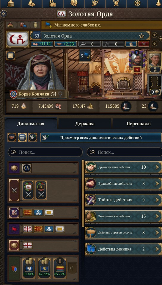 > разные типы вассалов соотносят силу всех вассалов относительно сюзерена только учитывая вассалов своего типа, то есть стоит делать 50/50 fiefdoms и Вассалов чтобы снизить дебафф к лояльности Какого хуя, юхан?