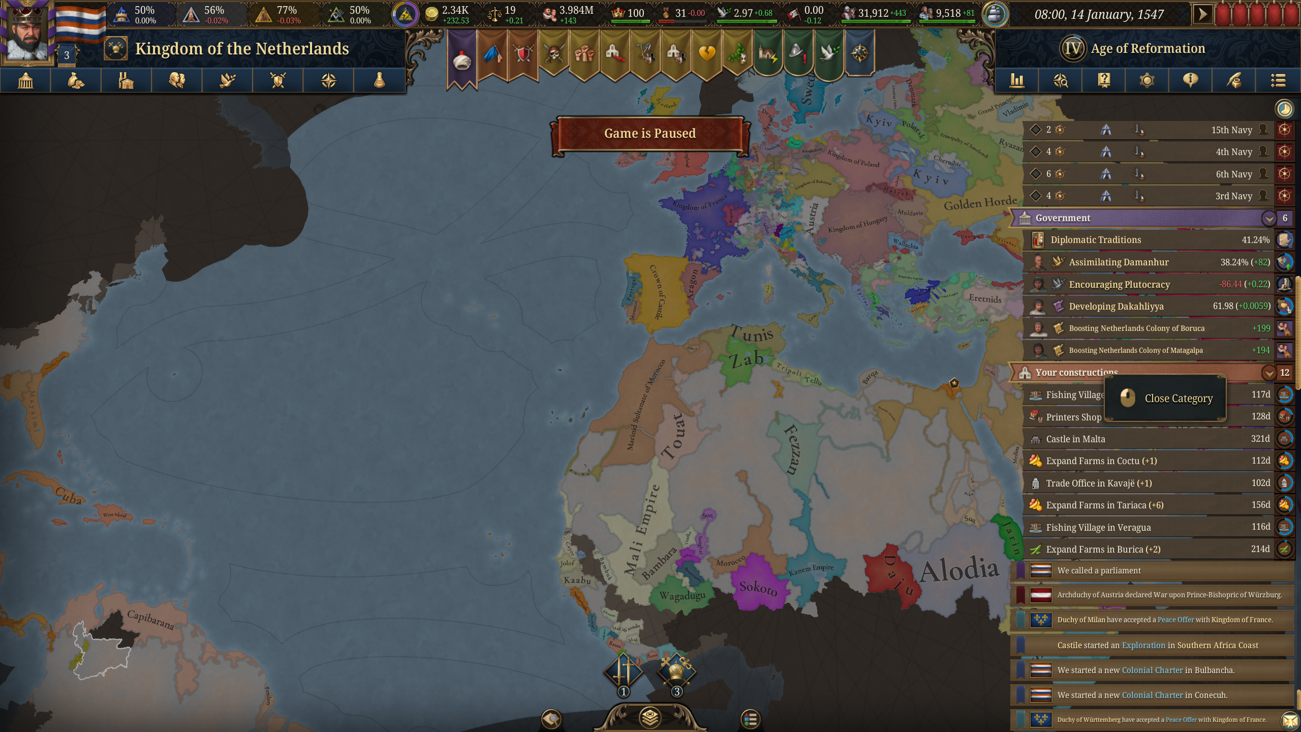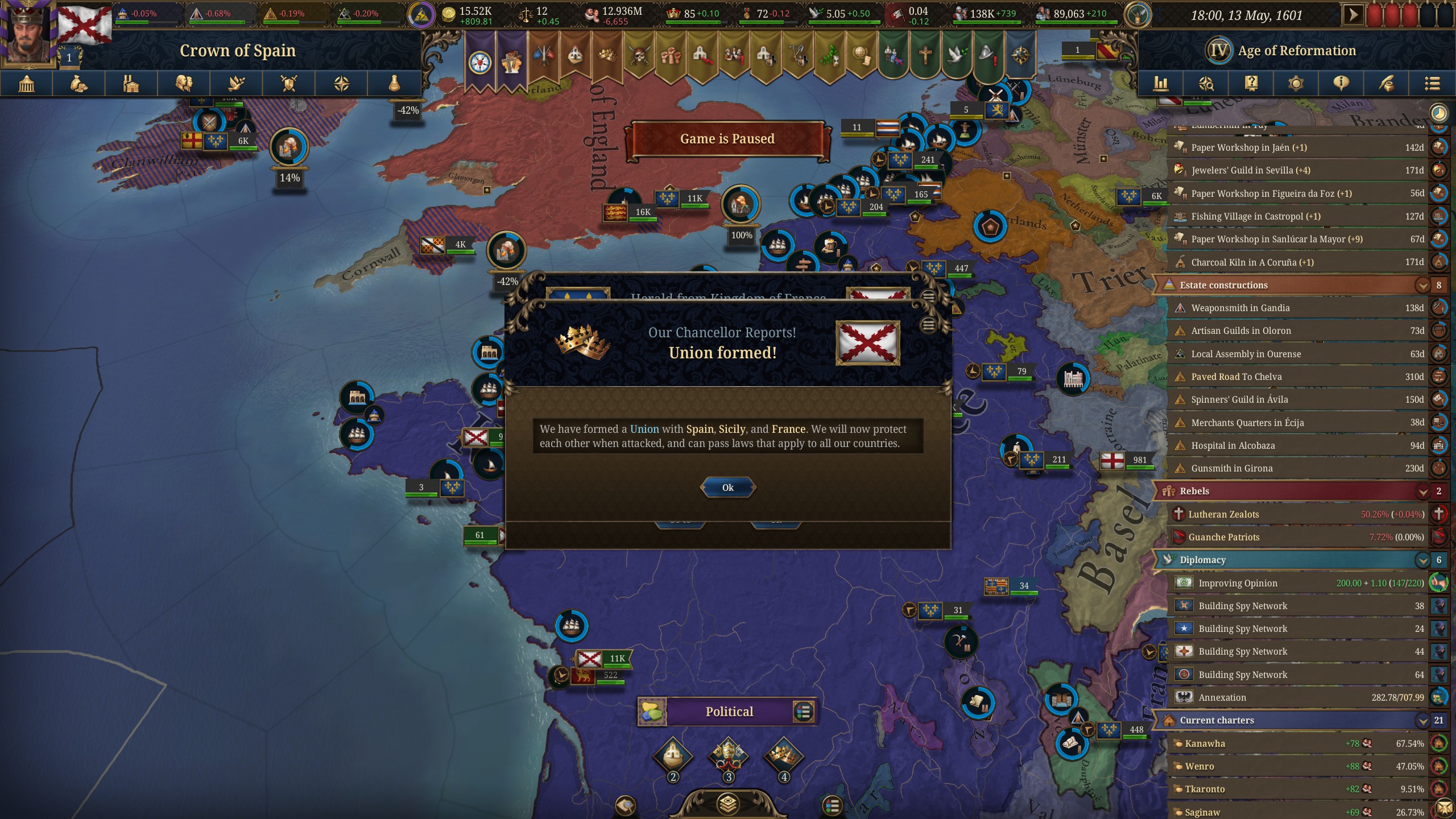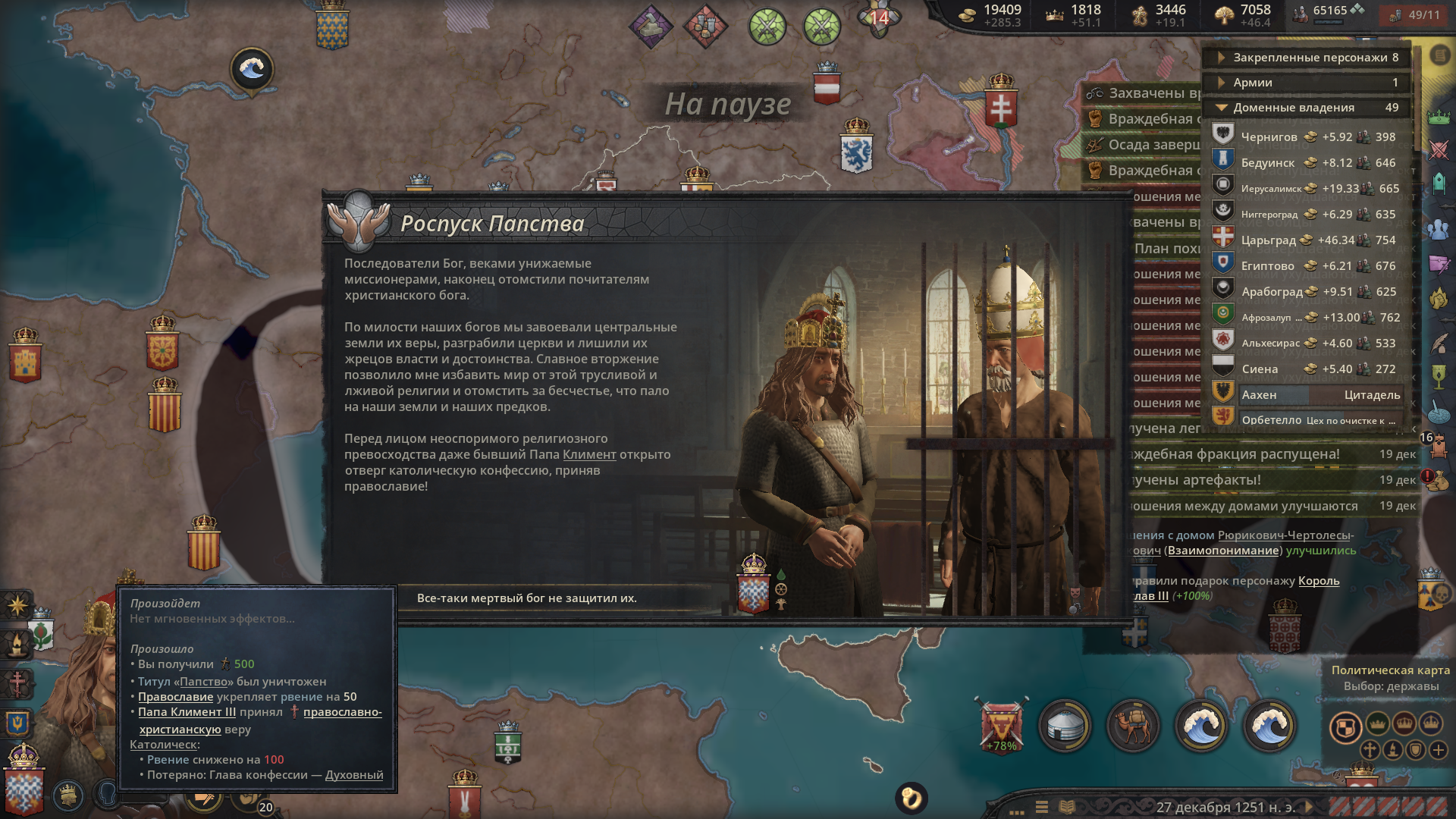 >>50482108 Я планировал распустить сри, уже даже к мировой войне готовился, но в последний момент меня осенило: можно ведь, не снимая паузы, перекатиться в лютеранство по решению ивента реформации (бесплатно), стать империей, а затем через потерю стабы вернуться в католичество. Все произошло так быстро, что Папа даже не заметил и союз не расторг.