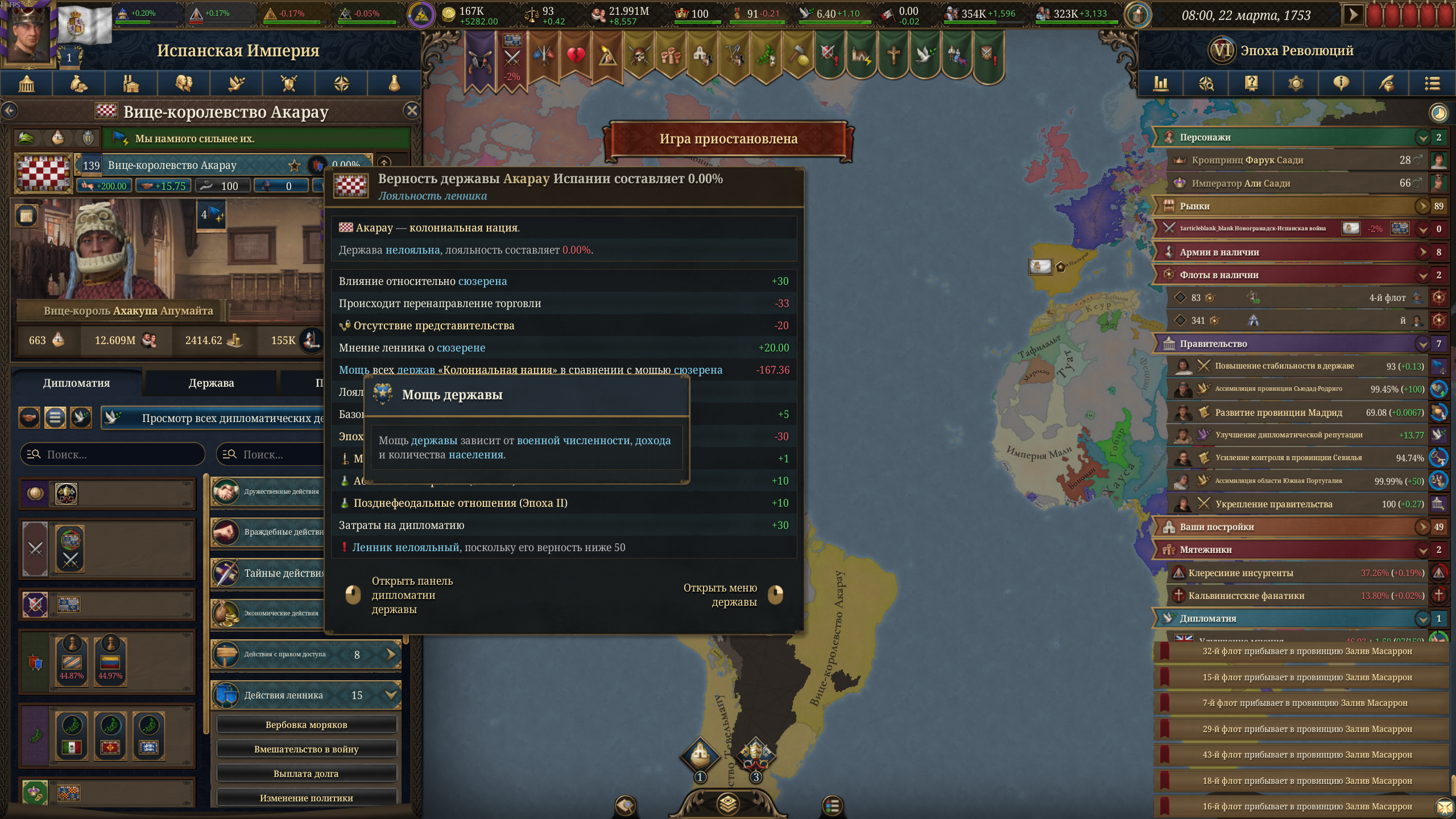 Блять пиздец. За визу зашёл, с одной стороны инкам поднялся на пару сотен из-за ребаланса экономической базы, с другой теперь у всех вассалов лояльность меньше 20% из-за централизации, а была выше 50.