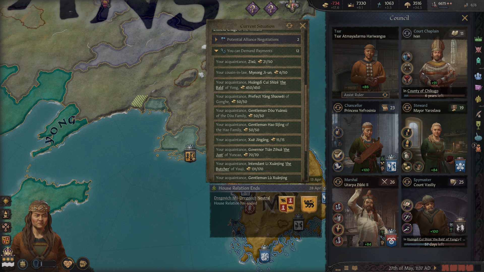 Пиздец, я проебал объединение южных славян так как надо было контролить территории как король а не император. Кто в здравом уме при конфедеративном разделении будет удерживать эти территории? Это что тратить все очки династии на лишения наследия или отправлять в мясорубку? Помню прожимал аналогичное за западных славян будучи императором Западнославии и оно спокойно проканало