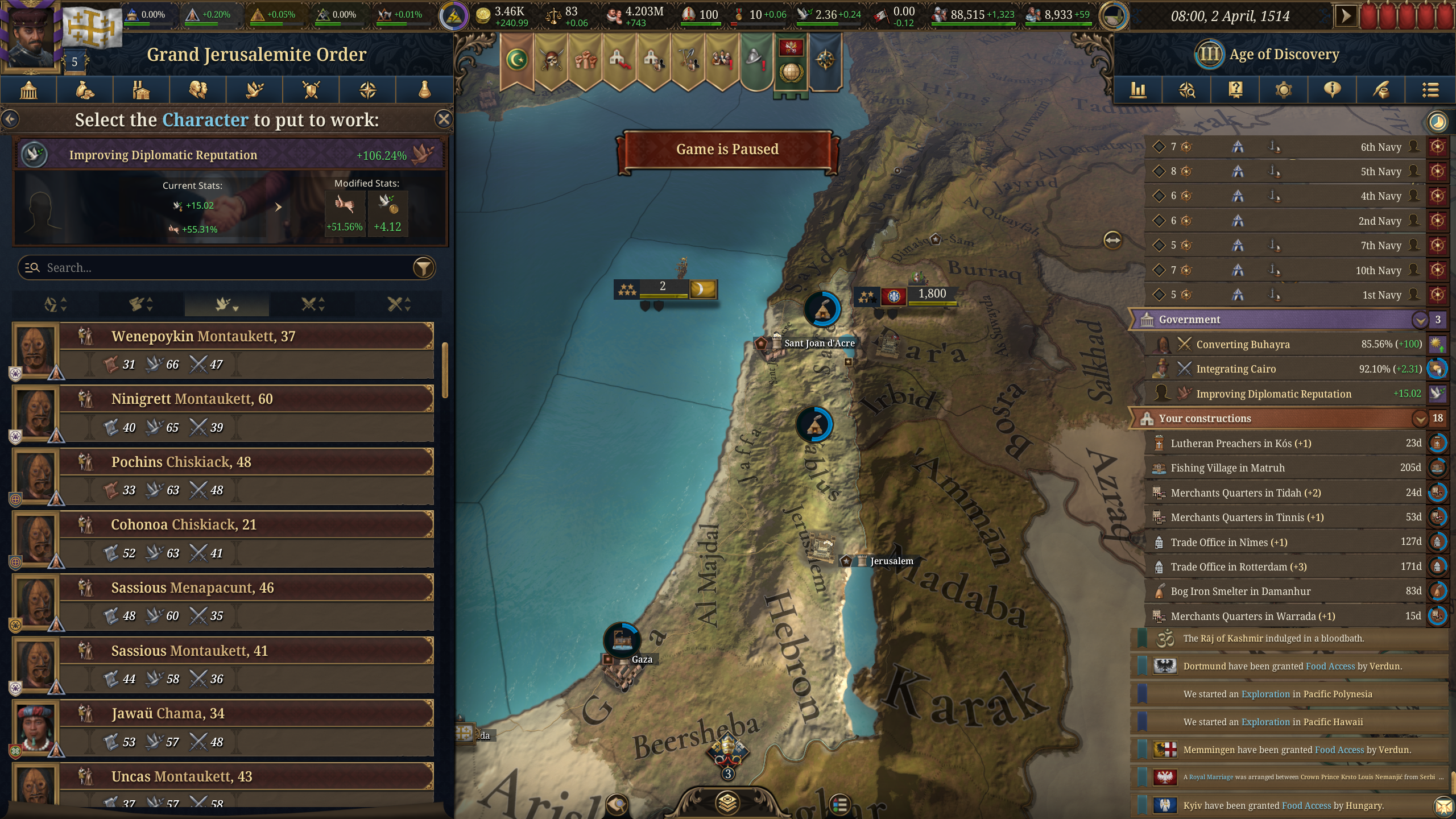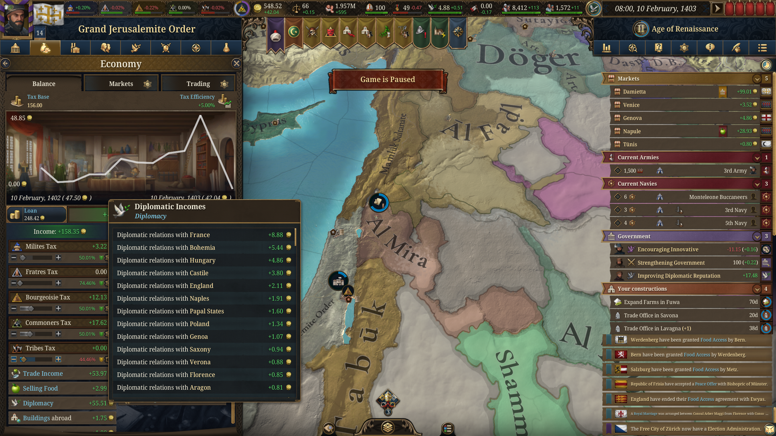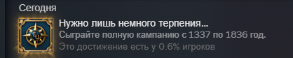 >>50508840 Во-первых, воевать мне в принципе не нравится. Во-вторых, оказалось, что у мусульман нет такого имбового повода для войны как deus vult, и за них приходится либо говноповод использовать (штраф за завоевание пздц), либо парламентскую претензию раз в пятилетку, а мне парламент самому нужен постоянно. В-третьих, я за это время доход увеличил в восемь раз, то бишь 70 лет игрался в домики.
