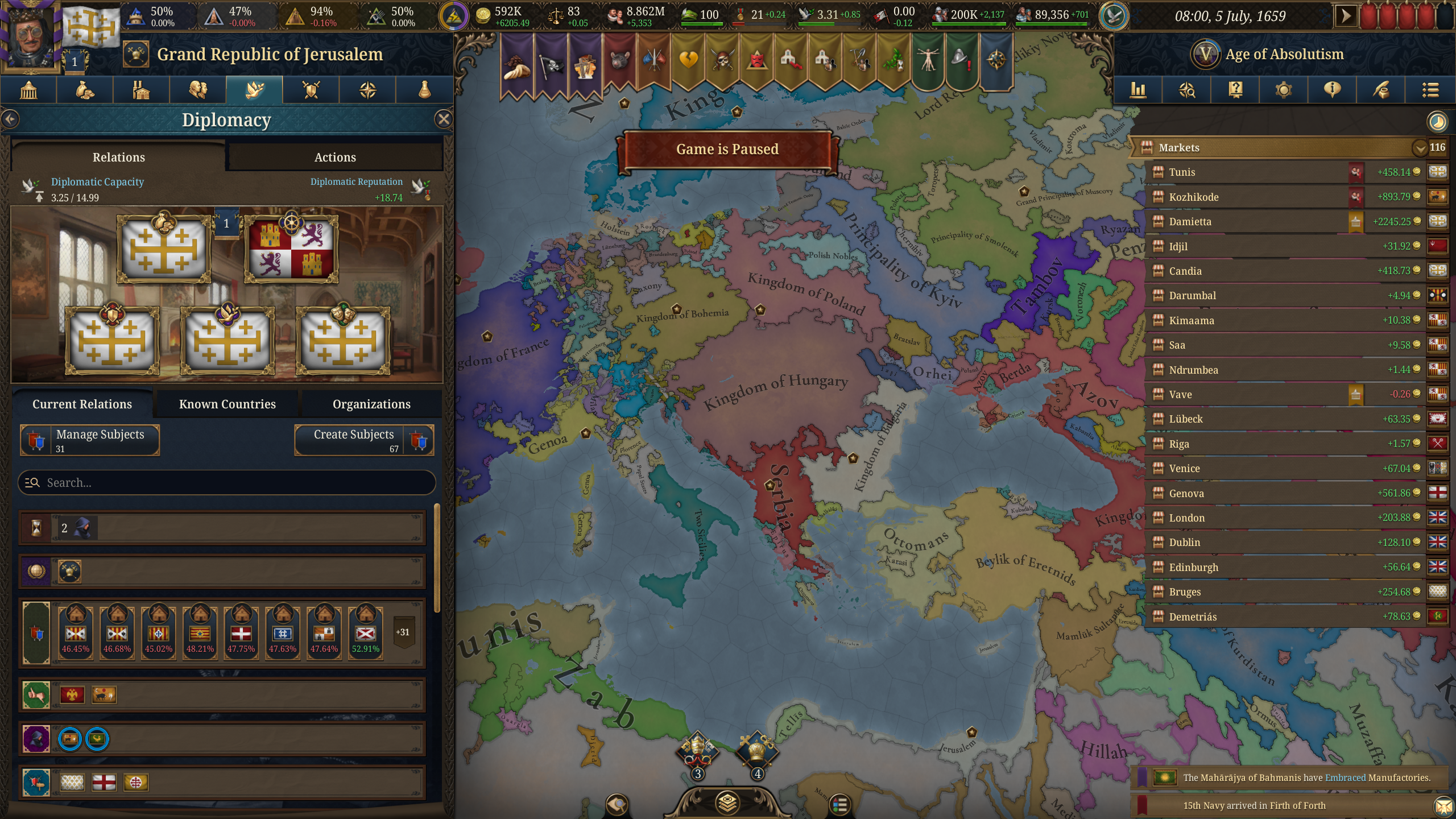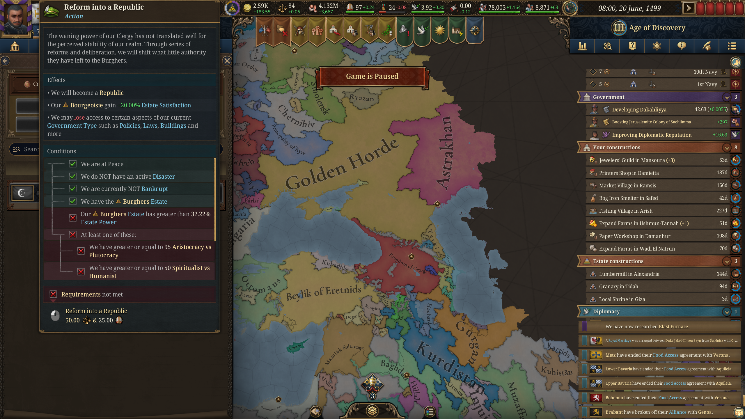 >>50512639 Орден слишком в верунство толкают, с ним нормальную страну не построишь. Ну и образования такого рода рано или поздно начинают скатываться в торгашество. Монетизируют, так сказать, религиозные преференции. Тем более в торговом-узле перевале между азией и европой. А игромеханически как, бюргеры сами силу набрали, а я терпел и гуманизм прожимал в каждом ивенте.