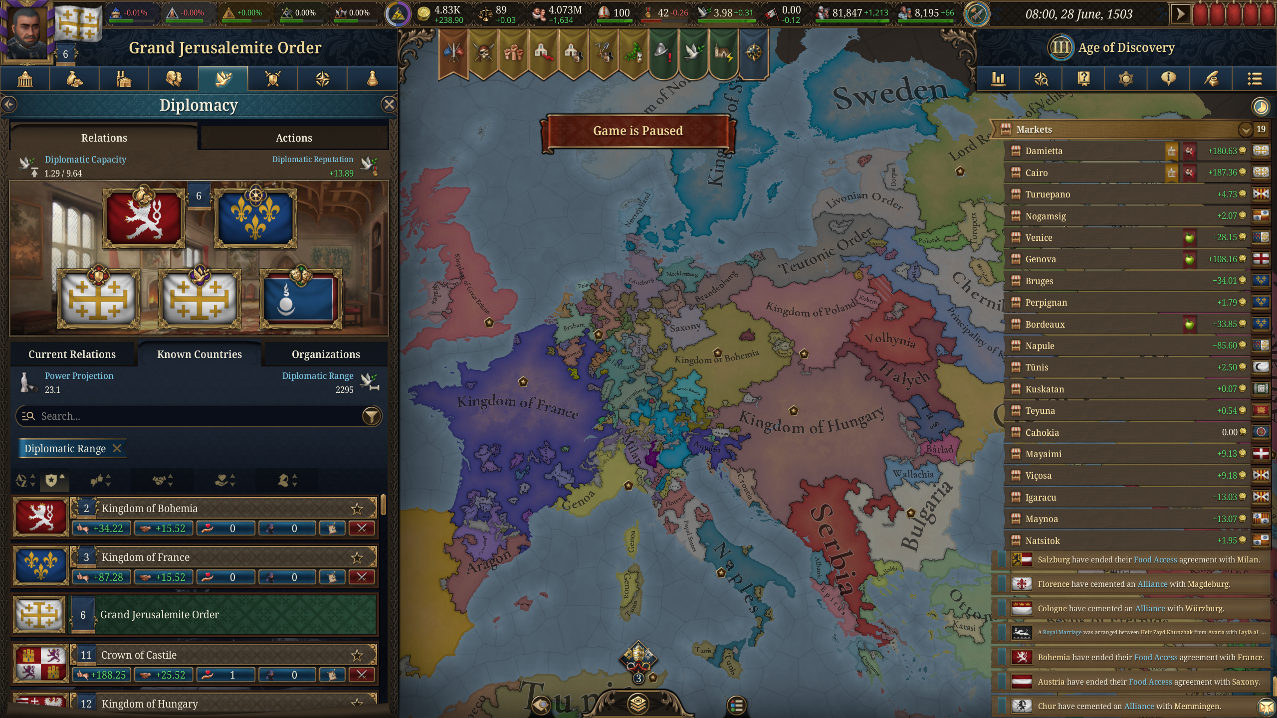 >>50482601 О, с диплодистанцией вроде разобрался. Поставил посольство во Франции, и стало хватать до Испашке. Нигде правда не написано было, что посольства так работают, ну и ладно. Прощаем Йухану это Йуханобесие.