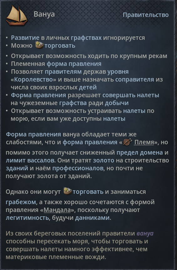 Реформированные язычники могут поднимать авторитет короны на любой уровень. Они получают доступ ко всем стандартным законам наследования (выборной монархии, сеньорату, первородству и минорату).