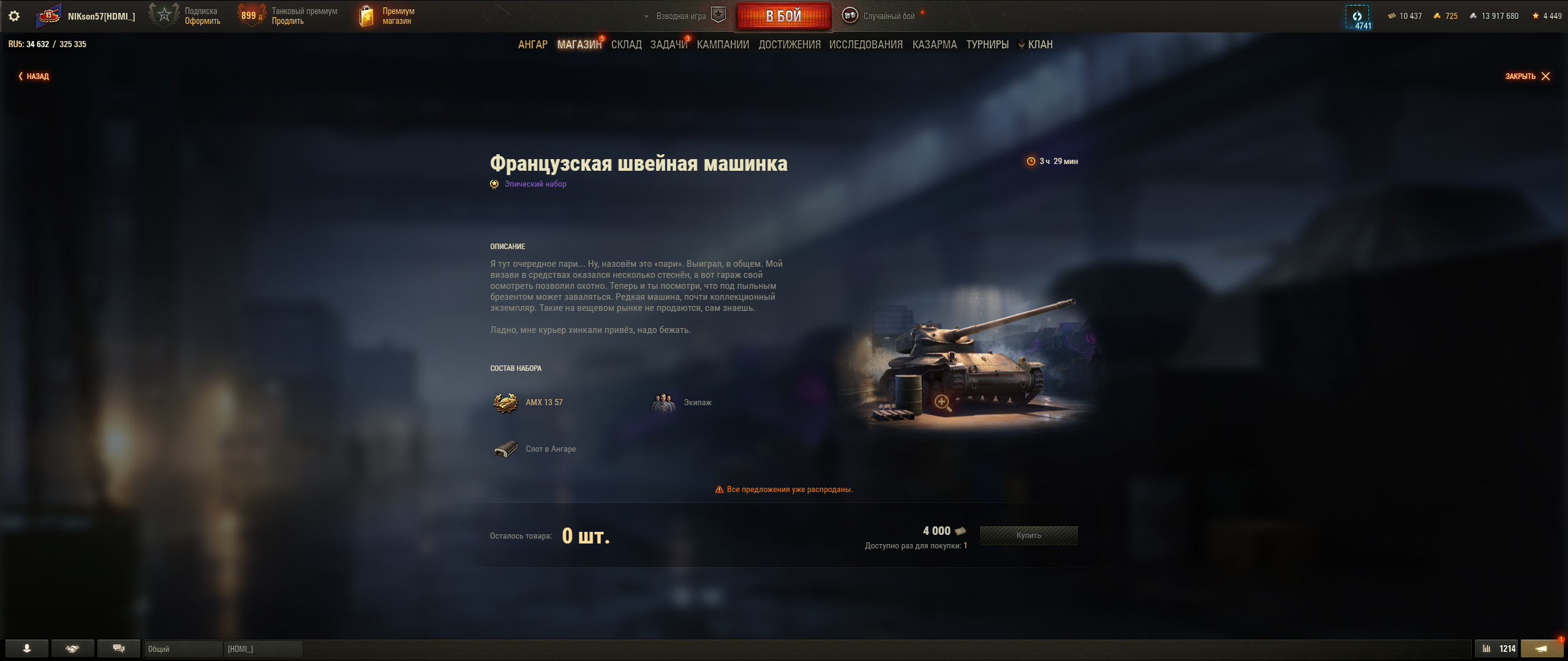 >>50482913 О ебать, это где ты за 30 млн серы можешь прокрутить себе танки, и купить их. Около бесплатный стоит 18млн и их всего 4 штуки. Обычно 1-2 хороших и 2 затычки. А есть за гойду, их тоже 4 штуки, их можно сверхредко купить за 1 серебро, но обычно за золото 10500-11500. Как то так.