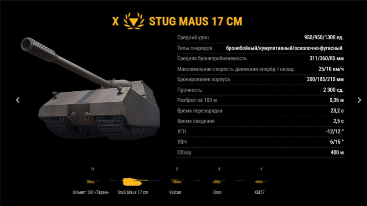 2️⃣ этап: • 🆕 Объект 120 «Таран» - в тундре он сосёт, в картохе обычный кустовой терпила без брони(говнецо) • 🆕 StuG Maus 17 cm - ягпизда • 🆕 Vulcan - может быть имбой • Orso - имба • XM57 - хороший танк