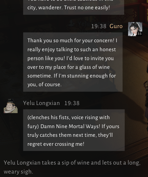 > А англюсик лучше здесь хотя бы потому, что фидбее о качестве локализации есть и они будут править если что не так. Хуйня ваше говно, в англюсике полностью теряется весь шарм китайщины, у них же не просто название какого-то говна, у них не крыса подзаборная, а "Полуночный грызун", не жаба ебаная, а "Жаба Лунного света" и т.д. названия простых, для нас, вещей у них в целые ахуительно красивые фразы, если прям переводить дословно и я люто с этой хуйни кайфую, потому что красиво и смешно.