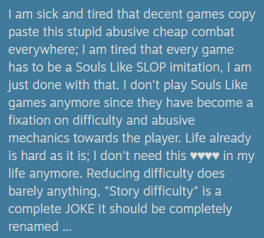 Неприятно. Кароч по ходу каждую драку надо чекать гайд. Я понял что надо дождить его попытки выкинуть, тут неслонжо, но когда он появляется и сдувает мне полстамины и я нихуя не могу сделать кроме просрать парирование, ну такое.