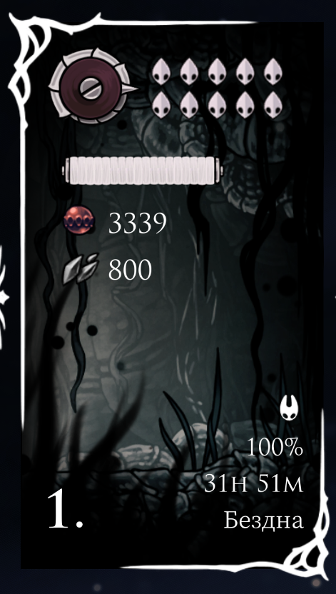 Все. Как же я стал лучше после силксонга. Лучезарность с третьей попытки отлетел, а когда то давно 8 лет назад я егго трайхардил пол дня, наверное и при чем ни один раз, да так, что в итоге бросил попытки и мой прошлый сейв со 104 процентами был. Алсо, остальные проценты это сонный гримм и пантеоны?