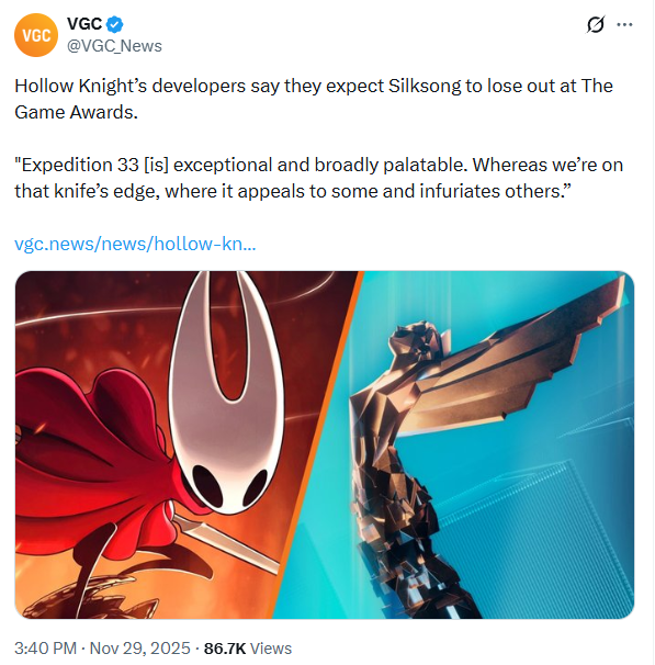 Ну что? Раковая опухоль не игра года. Это просто праздник, соулсодебилы наелись хардкорного кала. Надеюсь в 2026 мы увидим по-настоящему красивых, динамичных и интересных метроидваний.
