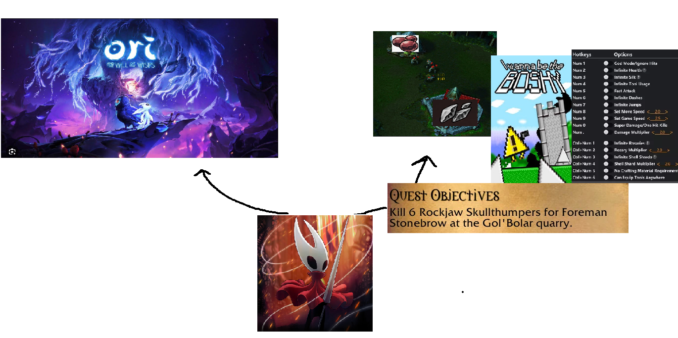 >>50483642 >само исследование мира В силксонге нет исследования, игра линейная как палка. Вот у тебя даже в оригинальном HK как минимум семь инструментов расширения доступности мира. Рывок, теневой рывок, полёт по горизонтали, слеза ишмы, фонарь, двойной прыжок, нисходящая тень. В силксонге их три. Рывок, гарпун и двойной прыжок. Суперпрыжок гиммик, можно не считать. За всю игру полторы развилки. Полный фейл.