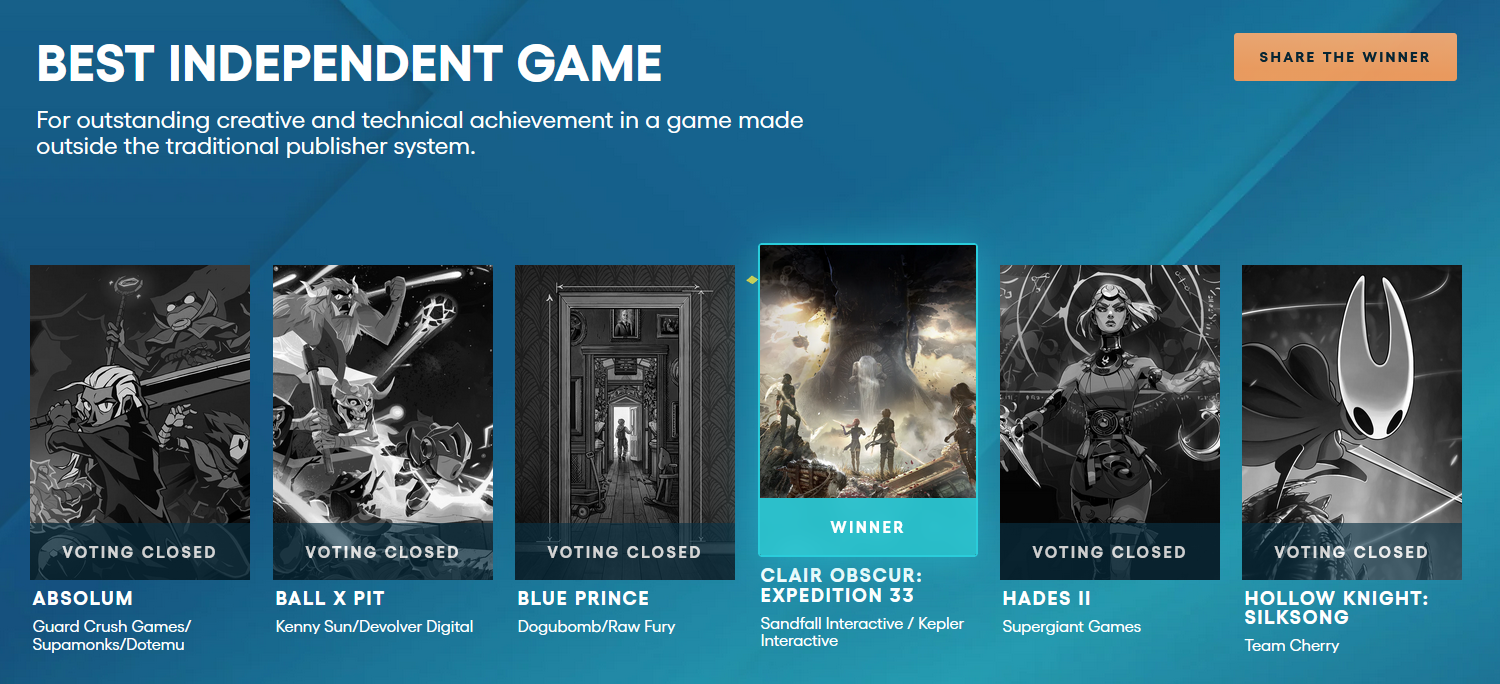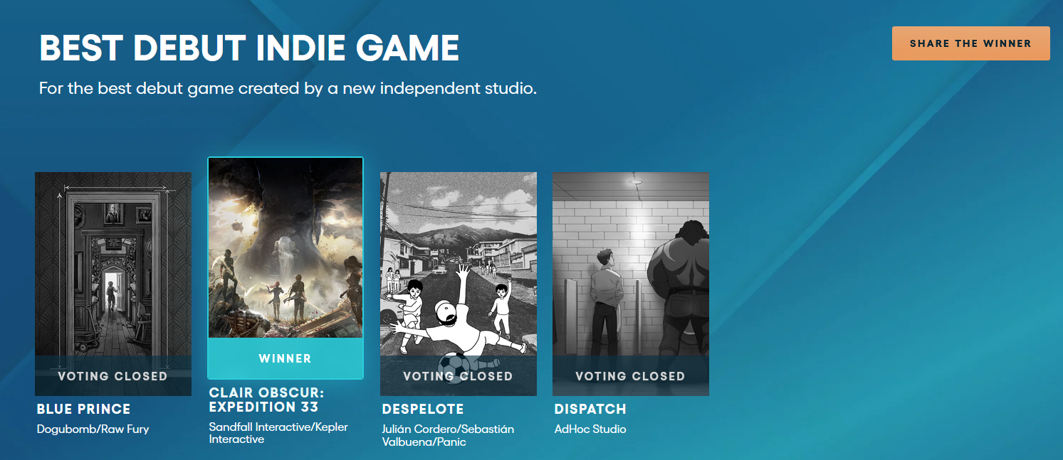 Вот с этого меня вообще разорвало нахуй!! Поместили трех каких-то мелких наверное хороших индюшек и ЭКСПЕДИЦИЮ блядь... Кто же победиит мдааа вот это интрига охуеть??)) Ясен хуй, что дегенераты на критиках будут выбирать то, что велит им мейнстримное медиа. До конца верил, что лучшую РПГ возьмет киндом кам, ибо какое нахуй РПГ в экспедиции блять??