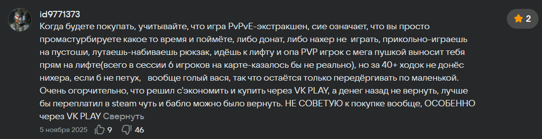 >>50520963 Не заставляй меня свою пасту доставать с прошлого треда. Тебе не заходит игра если ты просишь пве. Присутствие других игроков и непредсказуемость их поведения - это единственное что наполняет смыслом происходящее на карте. Даже если ты настолько конченный, что готов 100 вылазок подряд с хуллкракером крошить бастионов с бомбардирами или 24/7 дрочить королеву с матриархом, то это не означает что остальные 95% комьюнити не отвалятся уже через неделю. Предсказуемость ботов и возможность заучить мувсэты и максимально подготовится без опаски быть убитым обнуляет ценность выносов. Все твои коллекции чертежей, арсенал и ранги будут пустышкой на уровне прогресса в онлайн ВК ферме. Ты же понимаешь? Это ЭКСТРАКШН ШУТЕР, хули ты он него требуешь гриндилку. Это блять адреналиновая сессионка с пермадропом. Схуяли разрабы должны бросать КОР блять геймплей и заниматься какой то дрочней, пусть и на основе игры, которая к основной идее игры никак не относится. Заебало слушать 10-50 часов в игре долбаебов, которые играют в игру только в отзывах и на реддите - ДАЙТЕ НАМ ПВЕ. Хуль ты долбаеб такой, иди в варфрейм поиграй, чего ты до нашего пвпзагона доебался и пытаешься его убить?