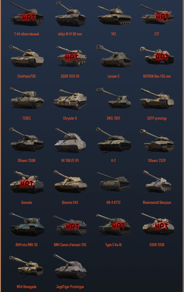 ⚡️Льготная техника — 8 машин, для которых были предусмотрены индивидуальные настройки балансировщика: VIII КВ-5, VIII 112, VIII WZ-111, VIII M6A2E1, VIII 8,8 cm Pak 43 Jagdtiger, VIII ИС-6, VIII T26E4 VIII SuperPershing и VIII T-34-3. Вероятность выпадения — 5%.