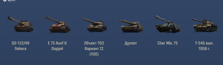 >>50493737 уже всё разжевал в прошлом треде: 1️⃣ этап: • 🆕 Дуплет - может быть хороший танк на уровне прототипо 6 • Т-54Б вып. 1958 г - говнецо • Char Mle. 75 - говнецо • 🆕 E 75 Ausf B Doppel - по стволам говнецо, но есть броня(будут ебать в лоб башни голдой) • 🆕 SD-122/49 Sekera - говнецо, про броню напиздюнькали • 🆕 Объект 703 Вариант II (100) - говнецо даже среди говнеца