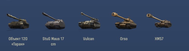 2️⃣ этап: • 🆕 Объект 120 «Таран» - обычный кустовой терпила без брони(говнецо) • 🆕 StuG Maus 17 cm - ягпизда • 🆕 Vulcan - может быть имбой • Orso - имба • XM57 - хороший танк