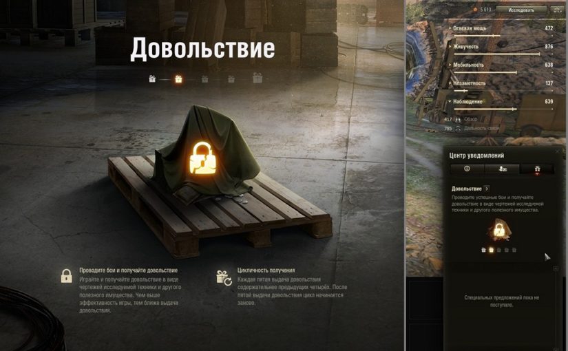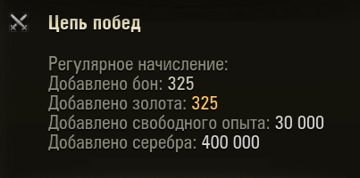 постоянные +10% к кредитам за первые 10 боёв в день; дополнительные награды и специальные события с Чаффи. Пока вы участвуете в сражениях, Чаффи не сидит на месте: он исследует Ангар и устраивает себе небольшие приключения. После первого боя каждый день с Чаффи всегда будет происходить забавное событие с неожиданной наградой в виде личных резервов, кредитов, предбоевых инструкций и других полезных предметов. После этого события с участием Чаффи будут происходить после определённого количества боёв со случайной вероятностью — чем больше вы играете, тем больше сюрпризов он вам преподнесёт!