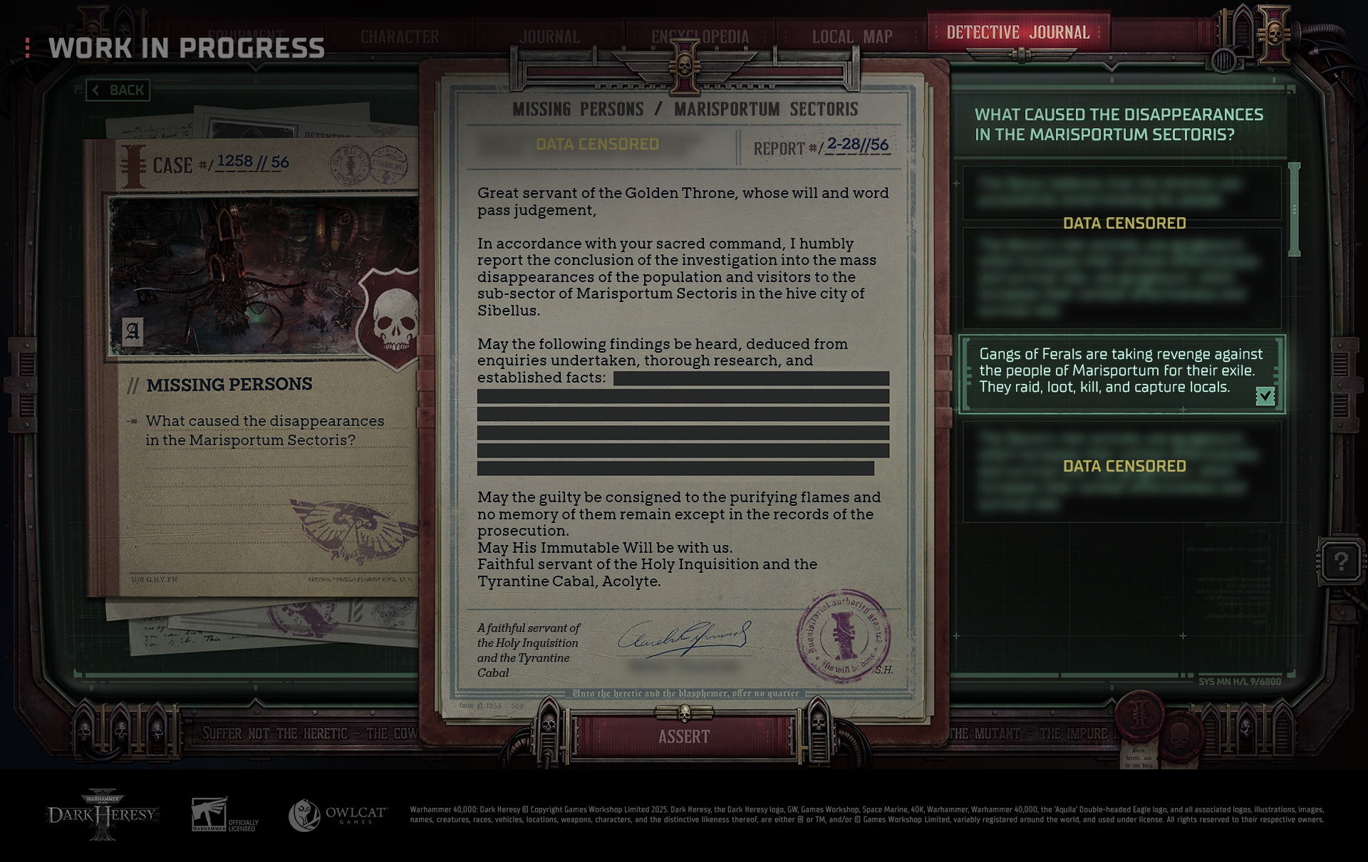 >>50512910 В ереси это логичнее,мы ищем улики и несостыковки в том или ином деле на протяжении всей игры,шарясь в помойках и во всяких сломанных когитаторах.