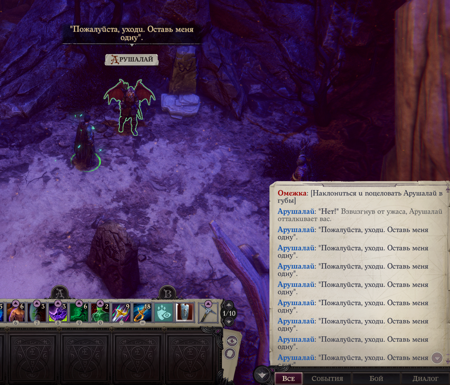 >Хрупкое тело Арушалай вспыхивает радужным светом, ее окутывает стая голубых бабочек. Она смотрит на вас сияющими глазами. "Я люблю тебя. Ты будешь со мной? Ты разделишь мою мечту?"