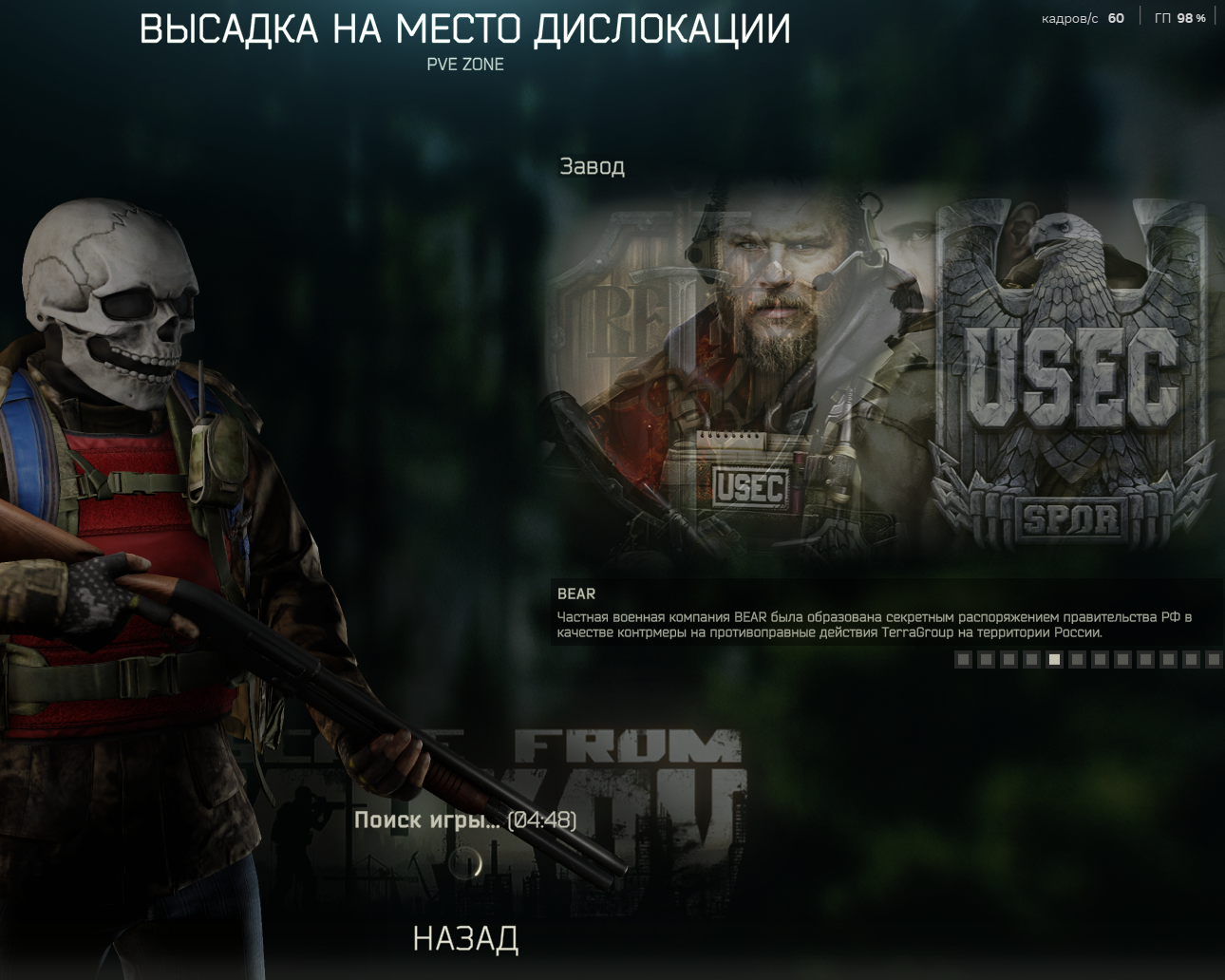 Так какого же хрена я делаю в Таркове?! Мне нравится всякое... балистика, оружие, патроны... всё это вот, но я не чувствую себя счастливым играя. Я боюсь! Идти на сраную другую карту! Пока я бегаю на (в) эпицентре и пару раз по старой памяти залетал на завод, там я пару раз жидко обосрался и больше туда не хожу.