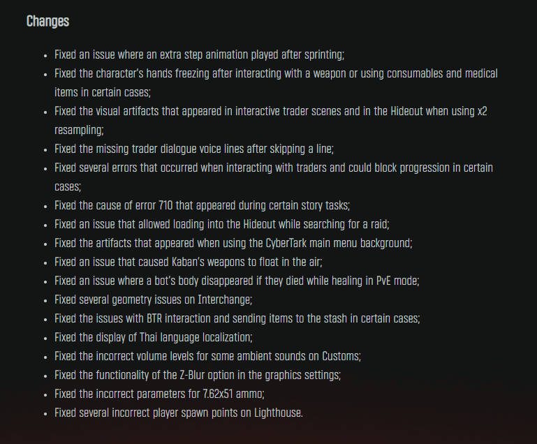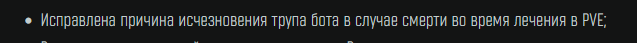 - баг с ошибкой удаления лота с Барахолки так и остался в игре, если выйти со страницы "мои лоты" и не досмотреть как таймер кончится - лот будет висеть как активный. - всё так же нельзя блять в поиске писать больше чем 16 символов, с чем это связано хуй пойми. - ящик на Берегу в хибаре с лодкой всё так же исчезает если к нему не подойти вплотную - в убежке все так же прицел на ПКМ какого то хуя в 3 метрах от тебя визуализируется. - боты всё так же идут сквозь двери если ты стоишь за дверью. ДОКОЛЕ?