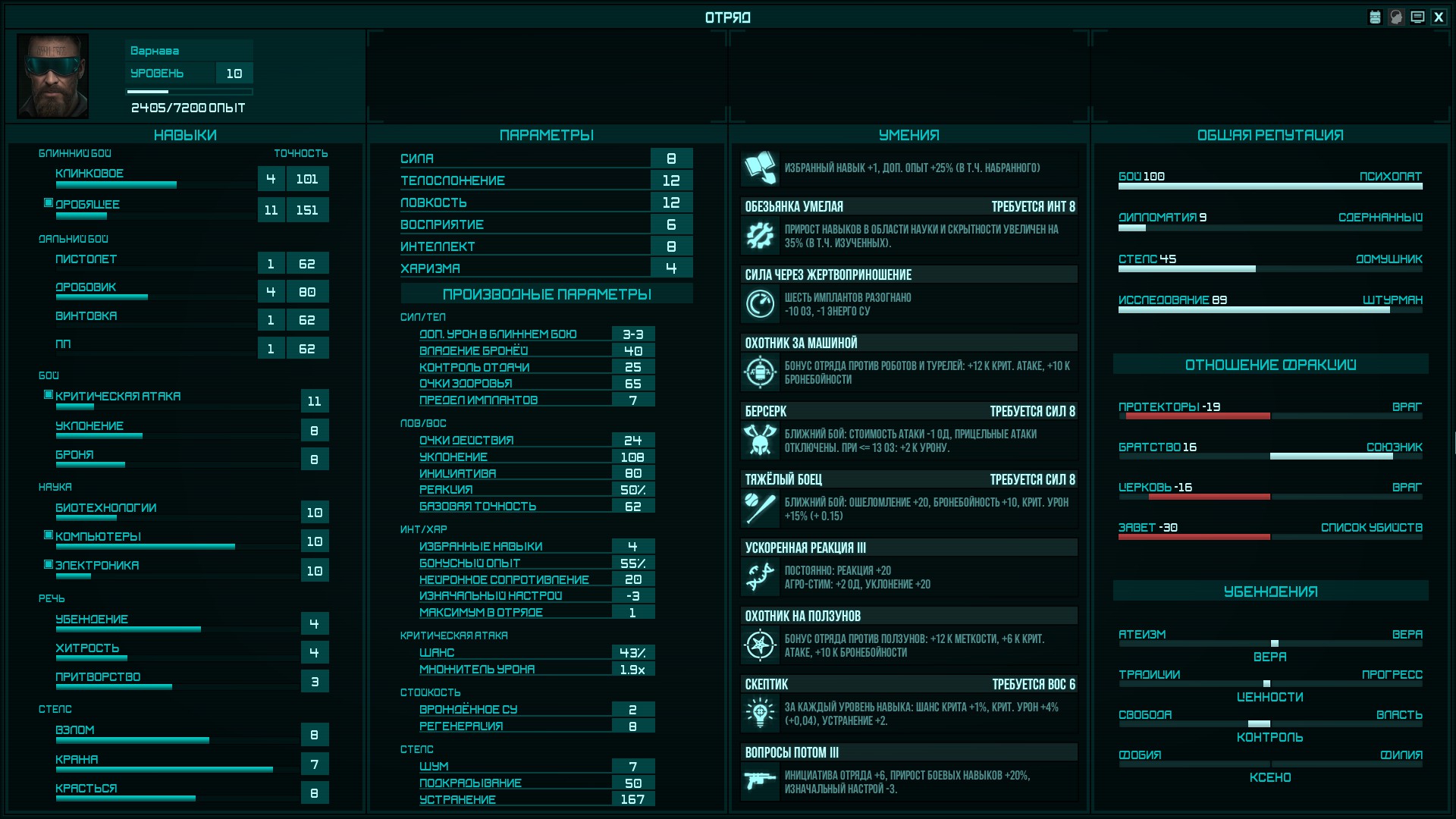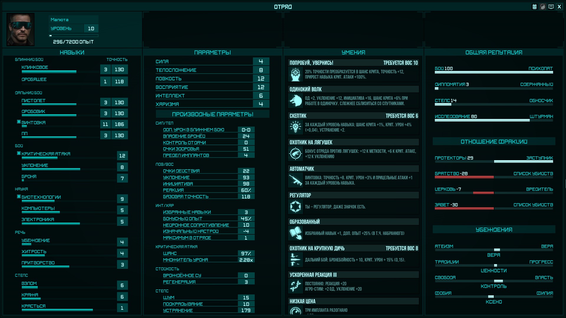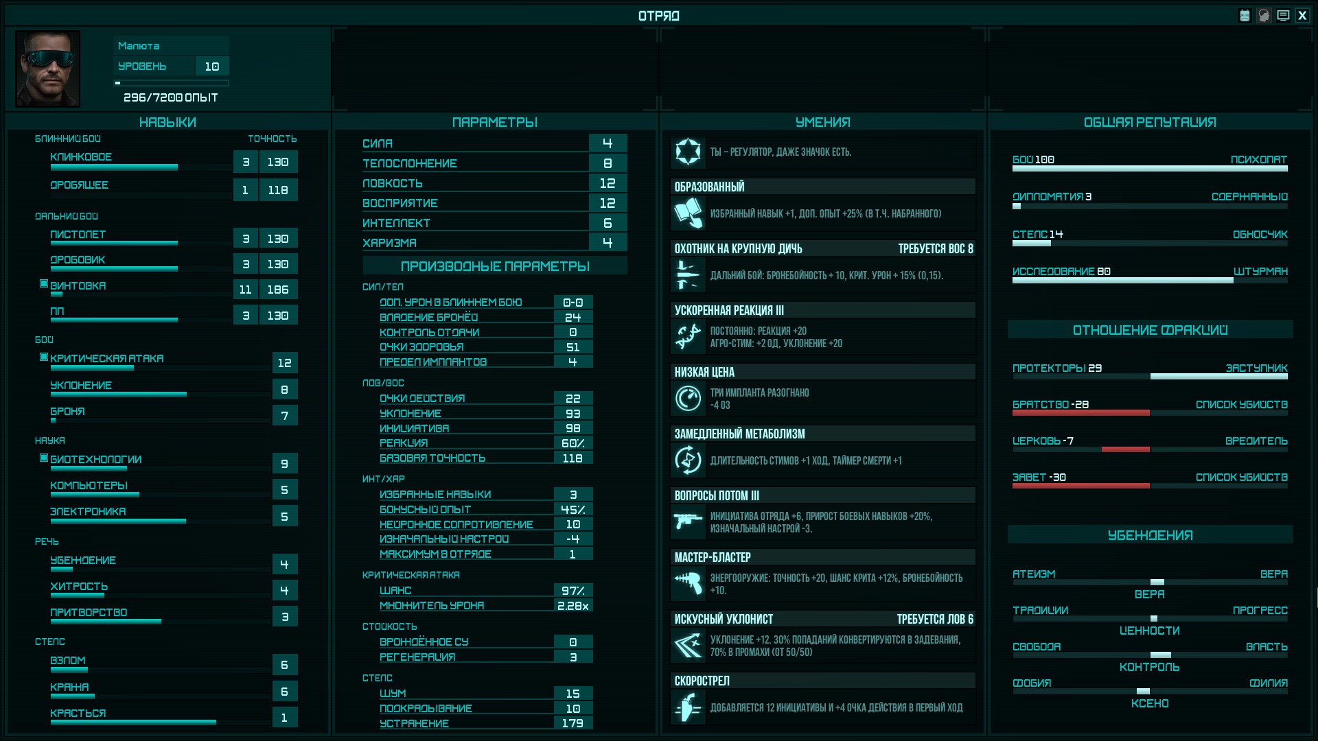 >пояснено какие статы надо классу брать Ну тут конечно да, по таким вопросам придется алтабаться и открывать мануал. У тебя в папке с игрой должен быть файл "Manual.pdf". Там исчерпывающая инфа по классам, механикам и т.д.