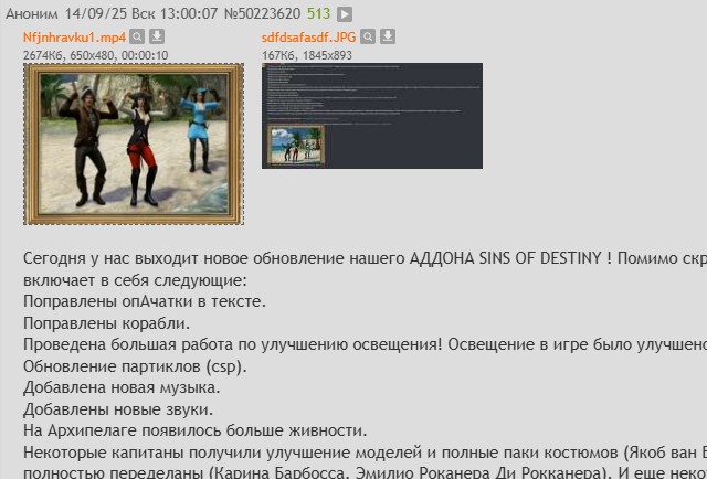 Патч для мода SINS OF DESTINY, который убирает поднятие флага старого повара во время "Романтики" на корабле. Запускать через разговор с самим собой https://dropmefiles.com/LfdN6