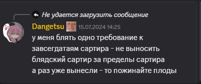 Буквально несколько дискордных пидоров умудрились засрать целый тред словесным поносом, удивительно. Походу какая-то отдельная комната с дурачками сюда переехала с пару недель назад, наверное искрометных шуток не оценила даже жорубина модерация, а блеснуть соплёй на солнце очень хочется