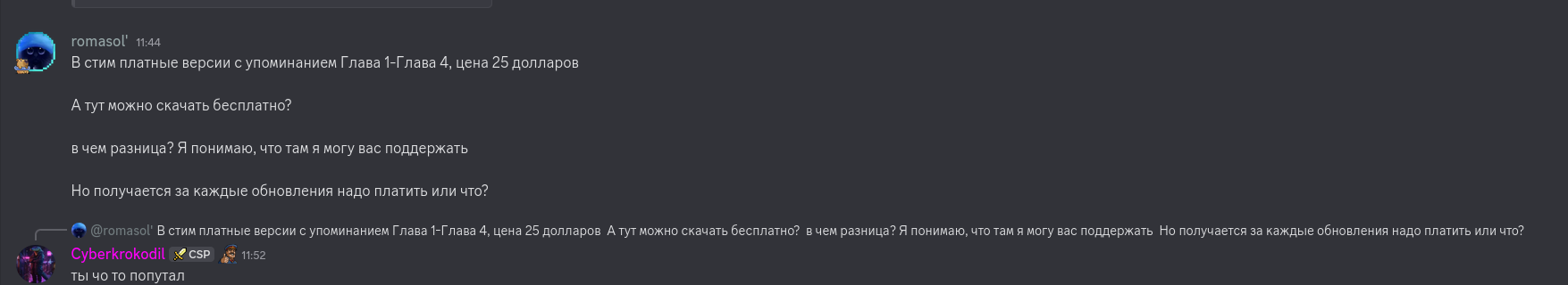 За 500 рублей, вы, лгущие мразоты, продаете людям нихуя. Просто полное нихуя. Ваш Бусти сдох, там один пост в 3 месяца. Ваша четыреждывысранная из жопы васня не получает никаких вменяемых обновлений. Вы закрыли 2.4.6. final с дикими багами, и объявили, что уже не будете чинить, потому что НЕКОМУ (sic!). У вас, блядь, два, сука, солнца в небе, это апофеоз вашего бездарного, наплевательского, скотского отношения к людям.