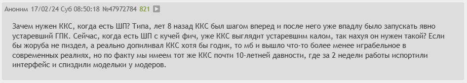 >>50544987 Скожите, почиму вонгарды ИТТ всегда сравнивают свой КАЛ с васянпаком, а не с ККС? Потому что не играли или потому что получится не очень удобно?