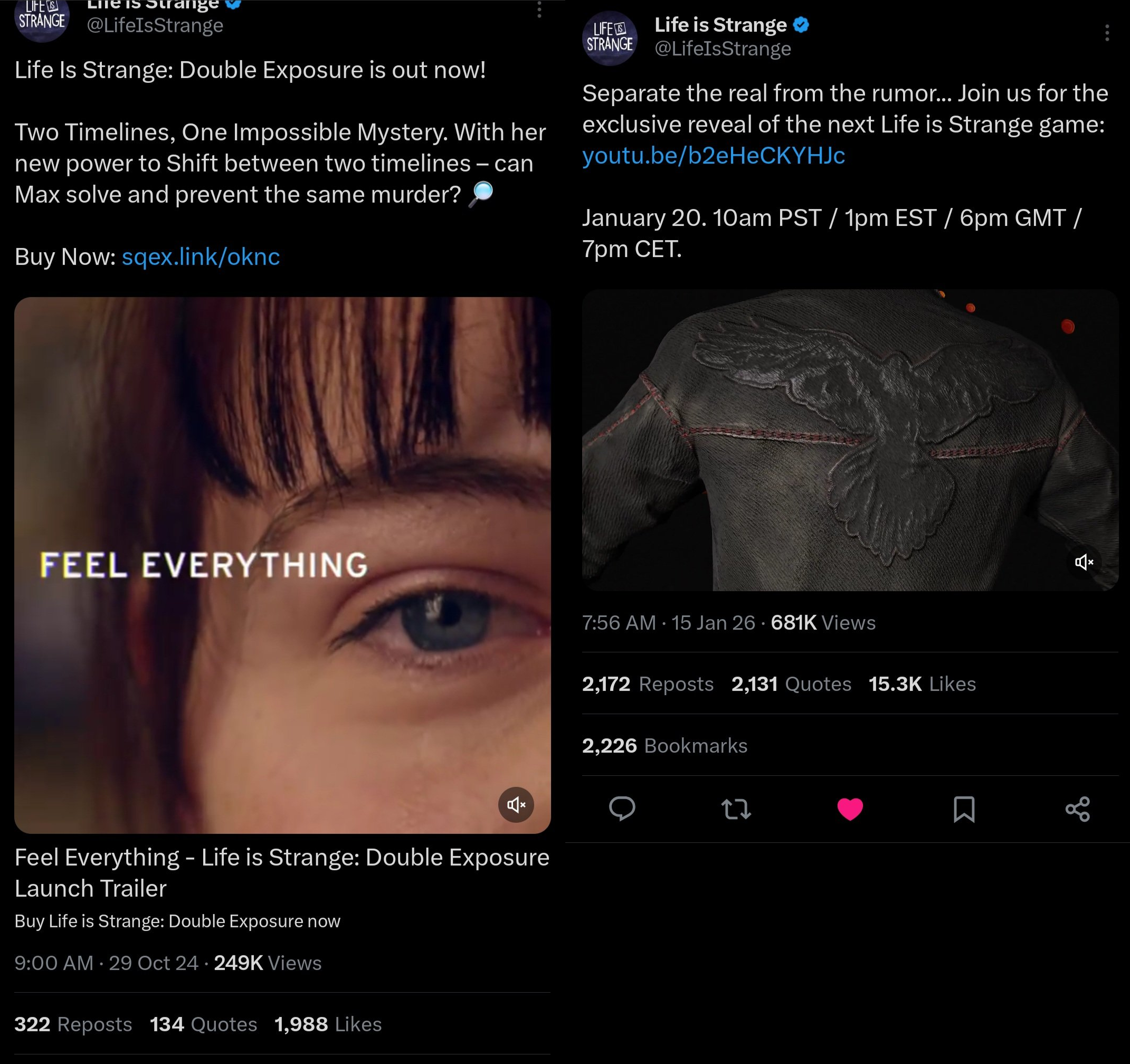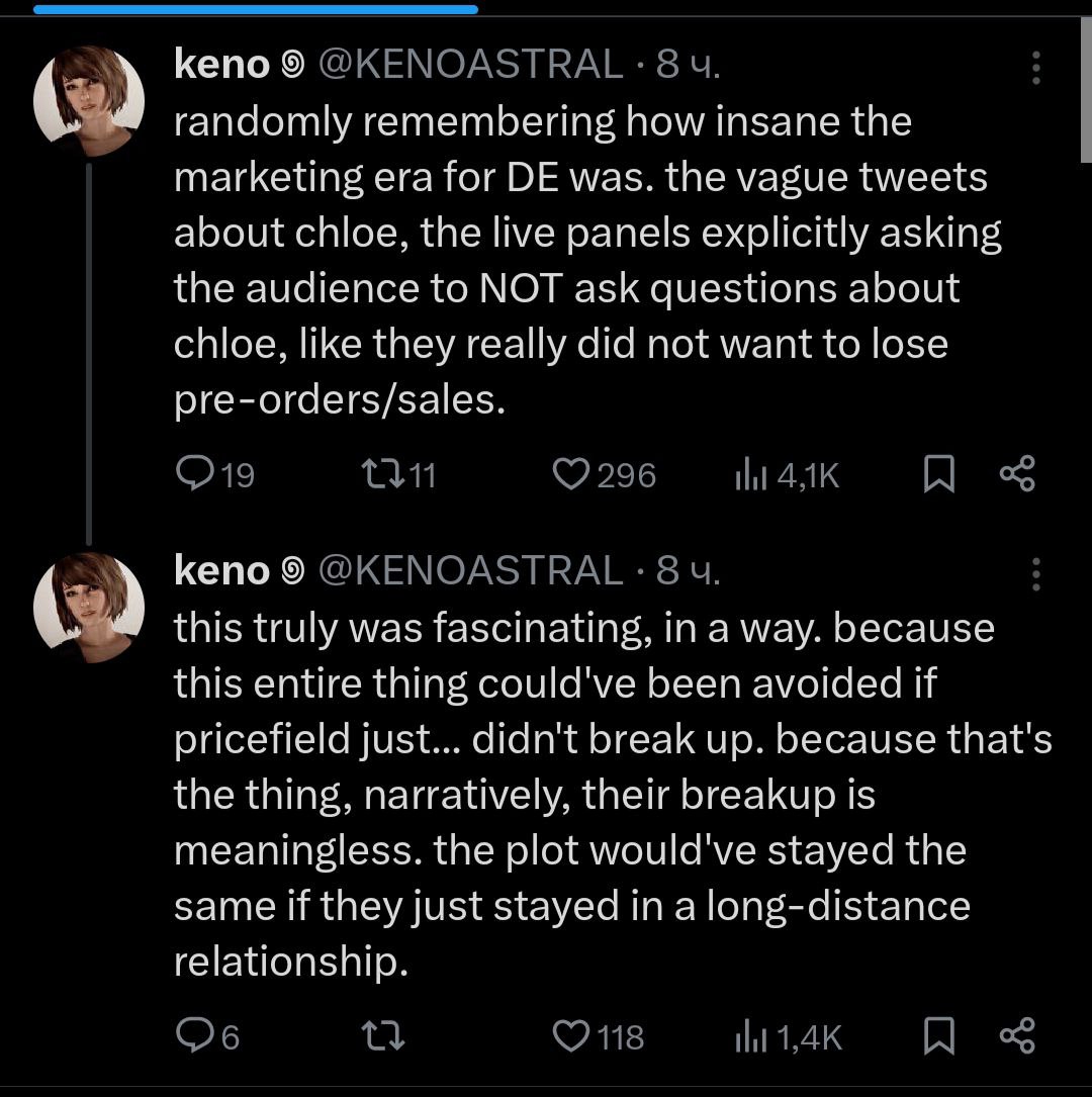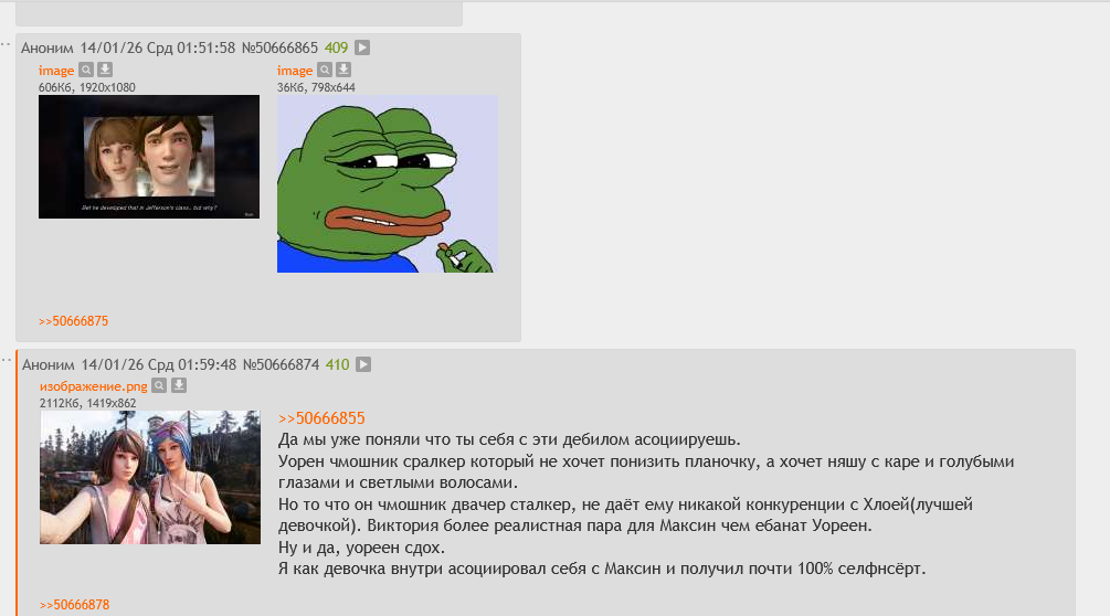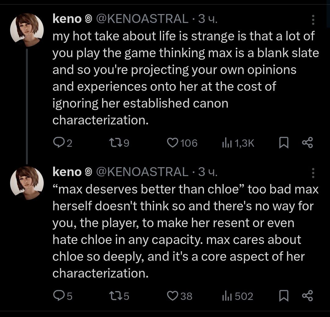 Тред посвящен культовой серии игр "Life Is Strange", разработанных студиями "Don’t Nod" и "Deck Nine" и выпущенными издательством "Square Enix", и их духовному наследнику разработанному студией "Don’t Nod" - "Lost Records: Bloom & Rage".