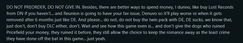 >>50690283 в следующем начнем хотя сейчас всё внимание приковано до марта будет к Реюниону Если только ДонтНод новости о сиквеле лост рекордс не забабахает
