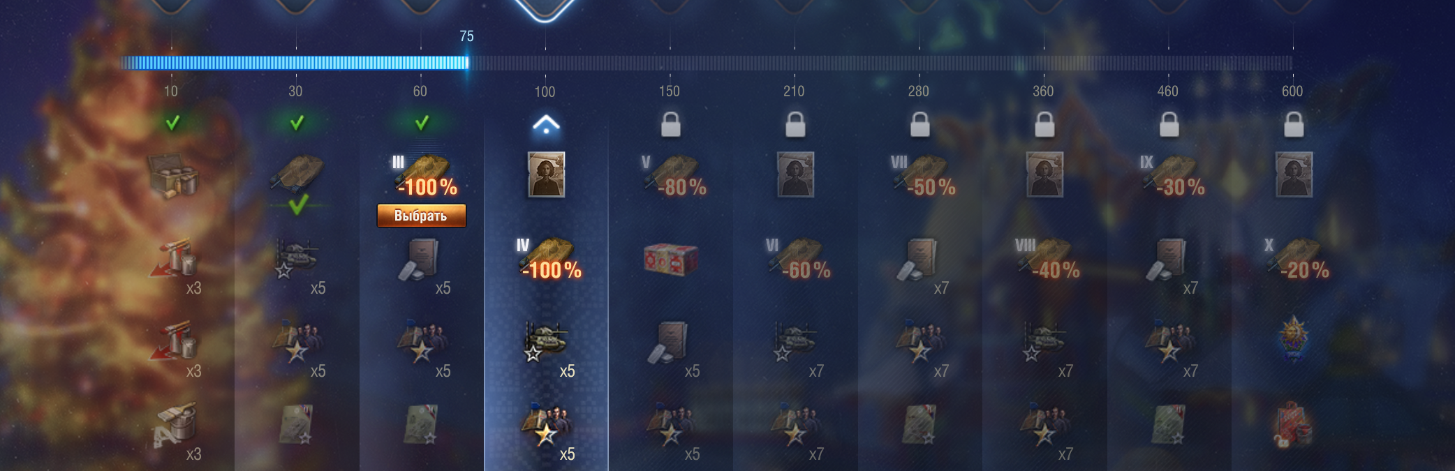 "Снова в строю" где посмотреть какие задания мне надо делать и какие награды. А то вот щас дали мне скидку на 7 уровень танчика на опыт и серебро, хочу следить за прогрессом и далее.