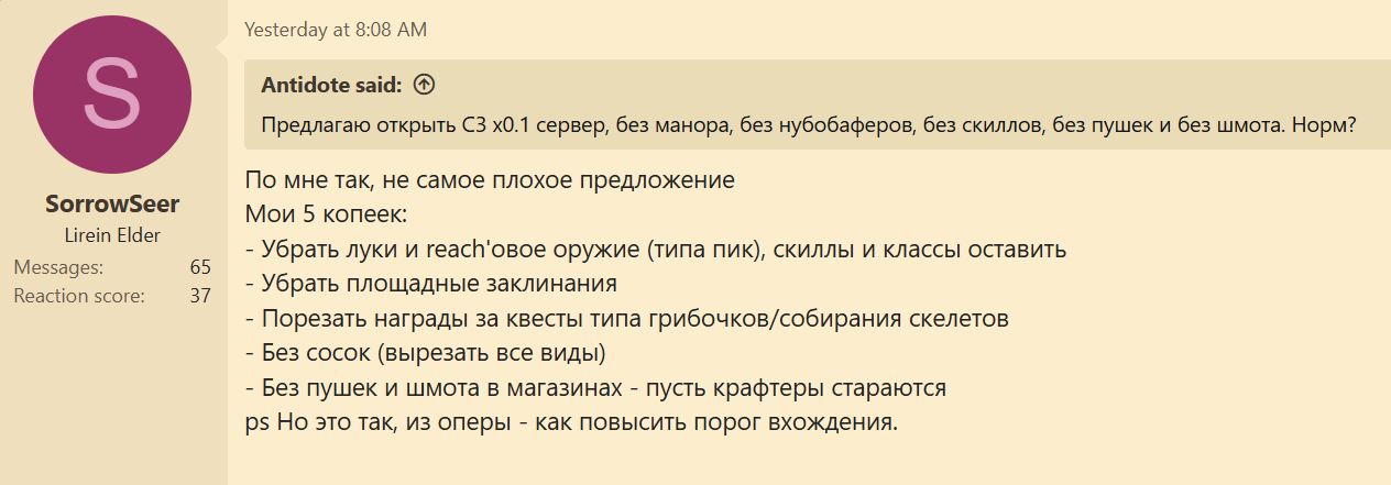 Вообще уже несколько раз проговаривал свое мнение. И оно не изменилось Получить нормальный сервер в 2026 можно. Тот что будет выполнять и функции музея, и быть местом для крабинга/чилла, и может даже небольшие интрижки на осадах.