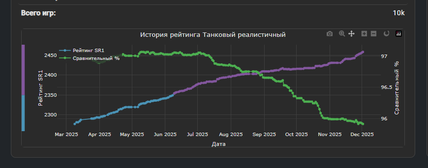>>50511936 > Ты далеко не всегда берешь дублера всегда. последние пару лет - всегда. навскидку есть несколько сетапов с нормальными танками 2 выезда (типы90, например). с таким подходом у меня ~3 на том, что мне нравится, и 4-5 на том, что играет прямо сильно. джумбо, маус, 279 и тд. >Я тоже могу кукарекнуть что имел бы 80% винрейта да, можешь. это понимают все, кто играет в тундру. 80% на сильных брах, но 70% - легко в соло, почти на всем (кроме немцев 5.7-8.7). >К чему оправдания? не оправдания. я пробовал играть в 1 выезд на стату. на пантере F, например. стату можешь сравнить с эрзацем, которая сильнее была, ибо ниже стояла.
