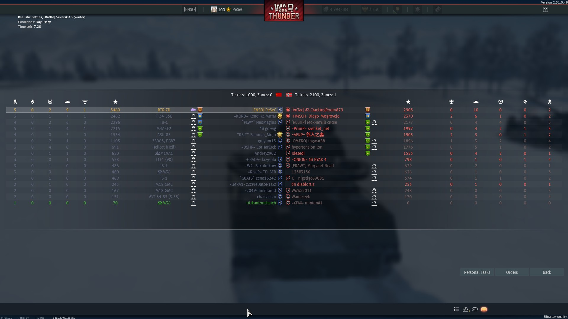 5 бой СССР снова просто заезжает на респ. Они тупо не умирают. Летка чет была, но снова 0 фрагов наземных, так друг друга видел посбивали где то в стороне, у нас вон гриппен насосался у Деградации. лол.