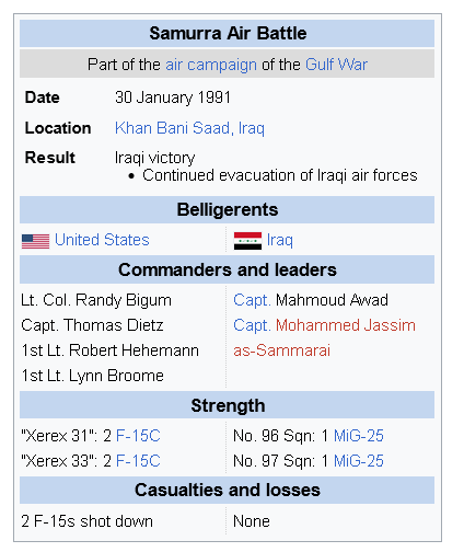>>50534616 А ты как думаешь. По факту есть 56 разбившихся в результате технической неисправности ф-15, вот и думай. Не дохуя ли неисправностей. Думаю не меньше 20 из 56 были в воздухе сбиты. На вики есть список потерь и фото обломков. Ну и конечно с ЗРК их сбивали не единожды тоже. Undefeated это миг-31, а не игл. Потому что кидает ракеты за 300 км из своего воздушного пространства.