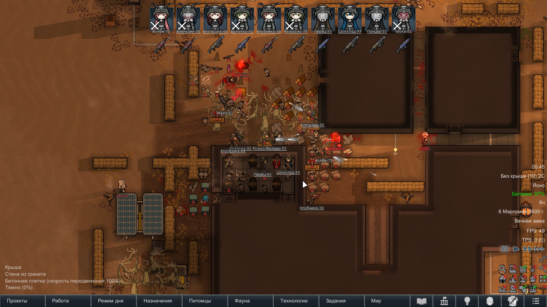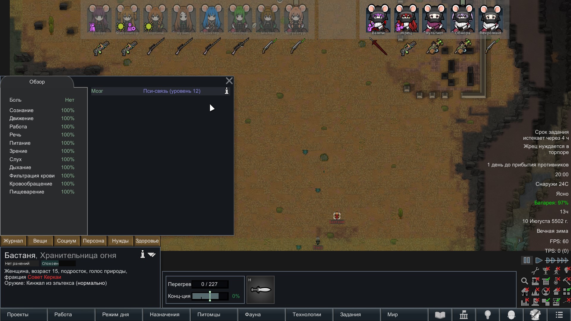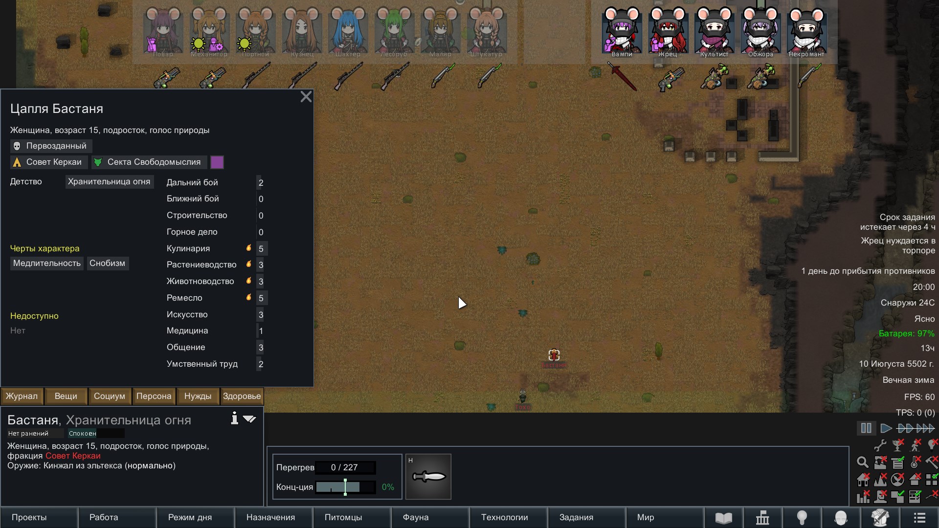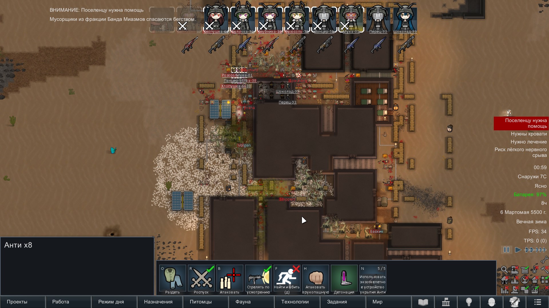 Начал на неприкрытой жестокости с целью лутать как можно больше хоть сколько-то годных пешек. Фонариками народ не зазывал. В итоге 1 пешку ждал год почти в соляного, дали ребенка блять. Кроме инжинера подсовывали какое-то говно, но я терпел. Потом инженер сдох от грипа, я не расстроился. У меня было 7 пешек. Потом взял какой-то квест, который звучит как "на вас совершат 2 налета силой х2 примерно следующего состава через 18 часов(это было ошибкой). Дали 2 пешек типа подмоги в катафракте. 1 из этих уебков зверски кулаками отхуярил мою топ2 пешку, которую я подобрал первой ребенком 9 лет(малышарик) и лампово воспитал под 20 дальнего боя.