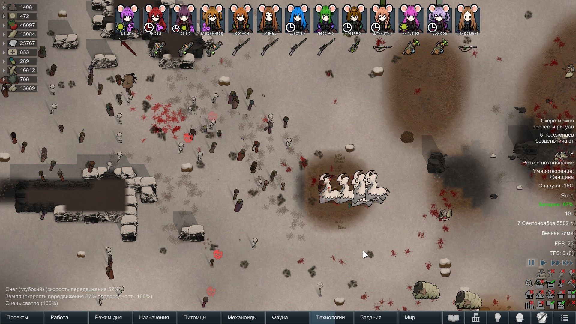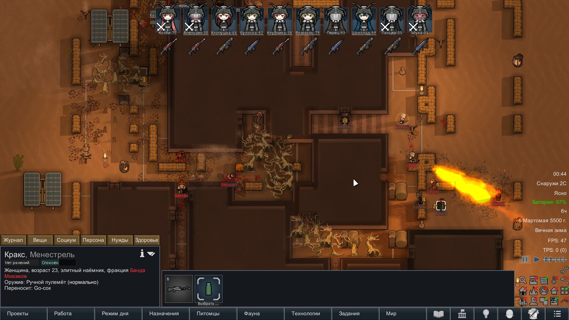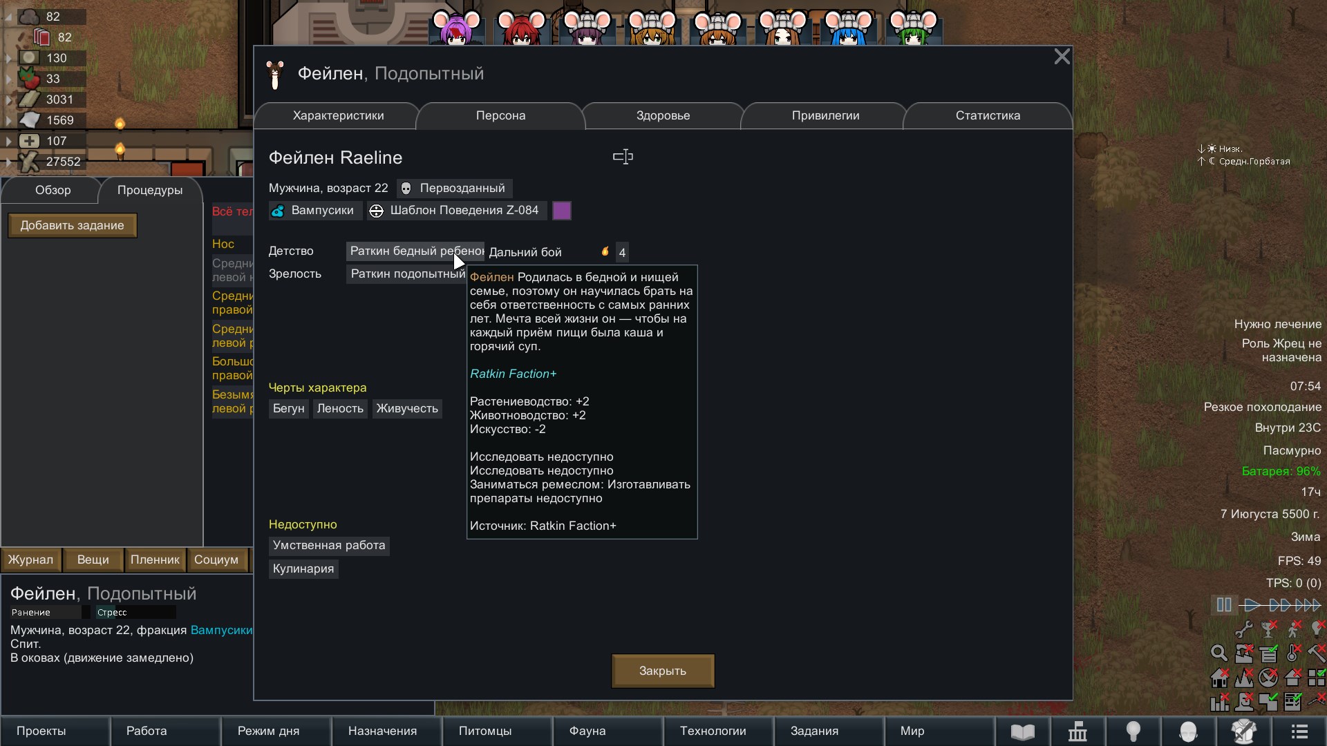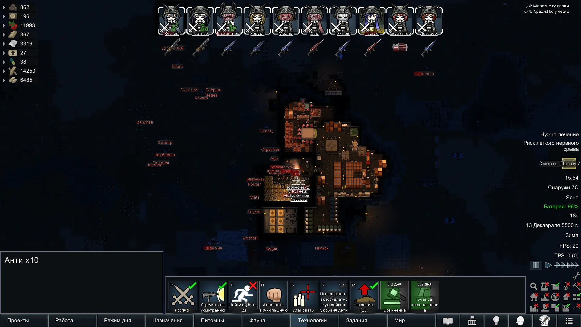 Начал на неприкрытой жестокости с целью лутать как можно больше хоть сколько-то годных пешек. Фонариками народ не зазывал. В итоге 1 пешку ждал год почти в соляного, дали ребенка блять. Кроме инжинера подсовывали какое-то говно, но я терпел. Потом инженер сдох от грипа, я не расстроился. У меня было 7 пешек. Потом взял какой-то квест, который звучит как "на вас совершат 2 налета силой х2 примерно следующего состава через 18 часов(это было ошибкой). Дали 2 пешек типа подмоги в катафракте. 1 из этих уебков зверски кулаками отхуярил мою топ2 пешку, которую я подобрал первой ребенком 9 лет(малышарик) и лампово воспитал под 20 дальнего боя.