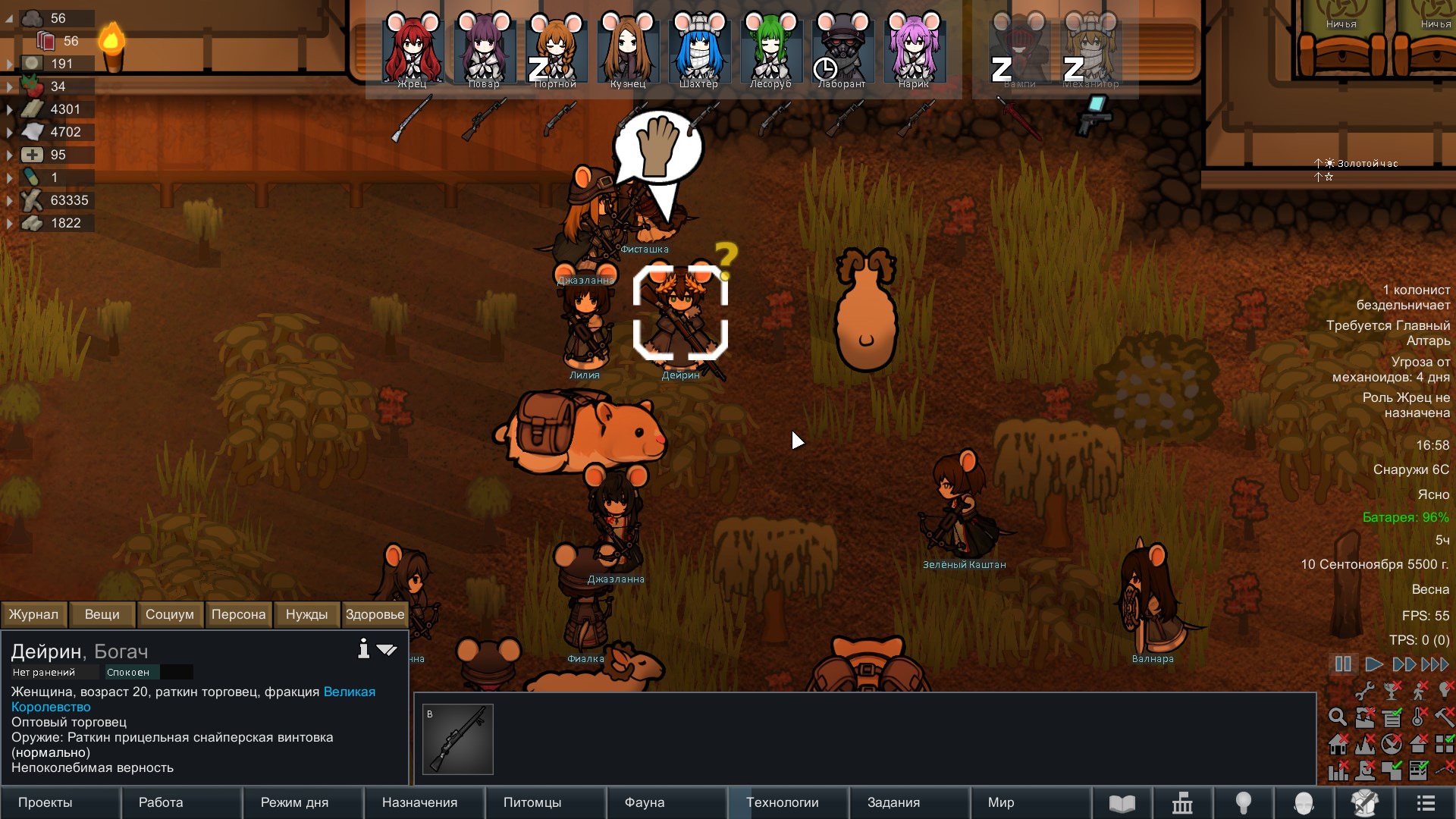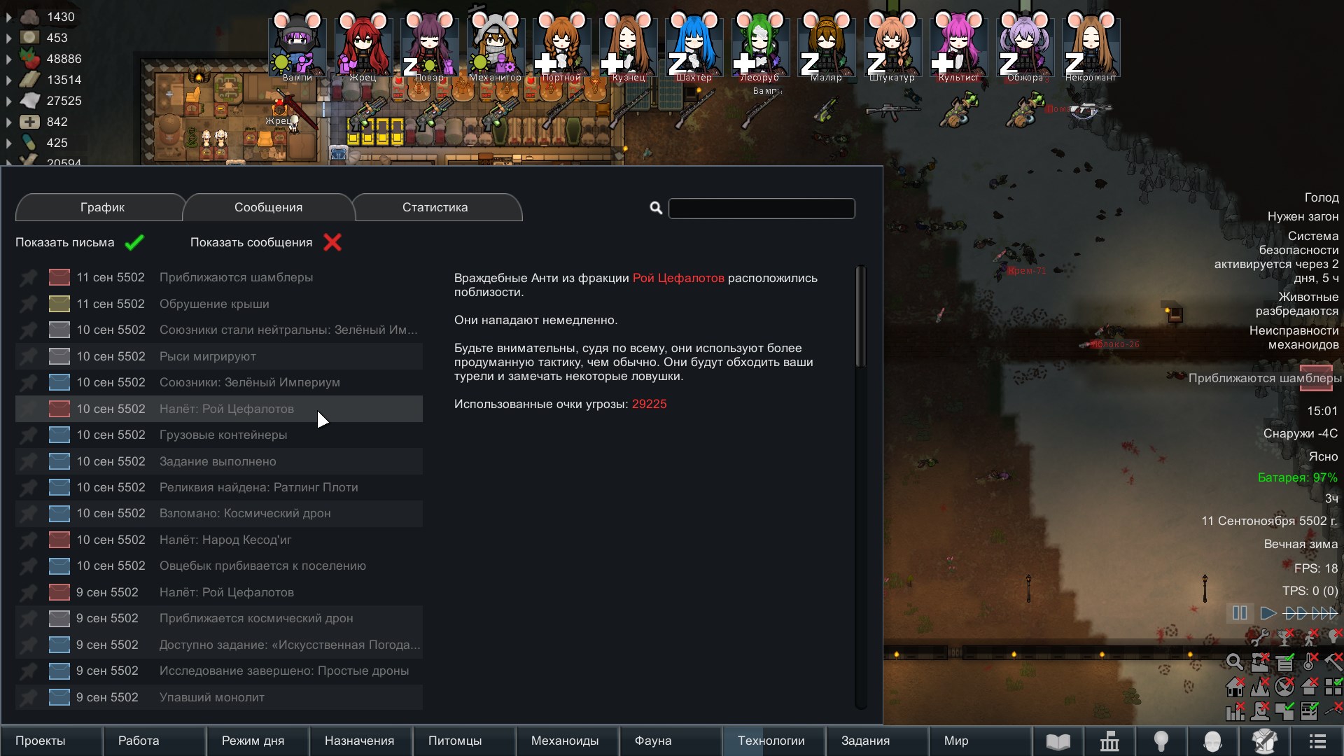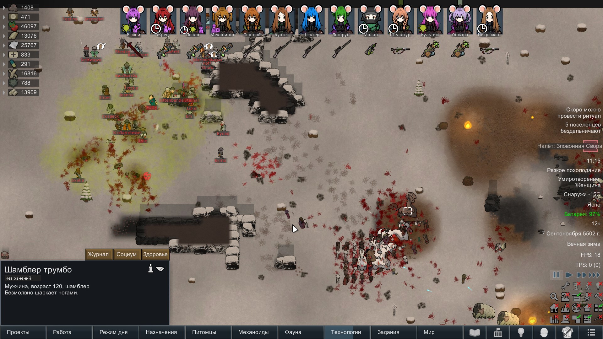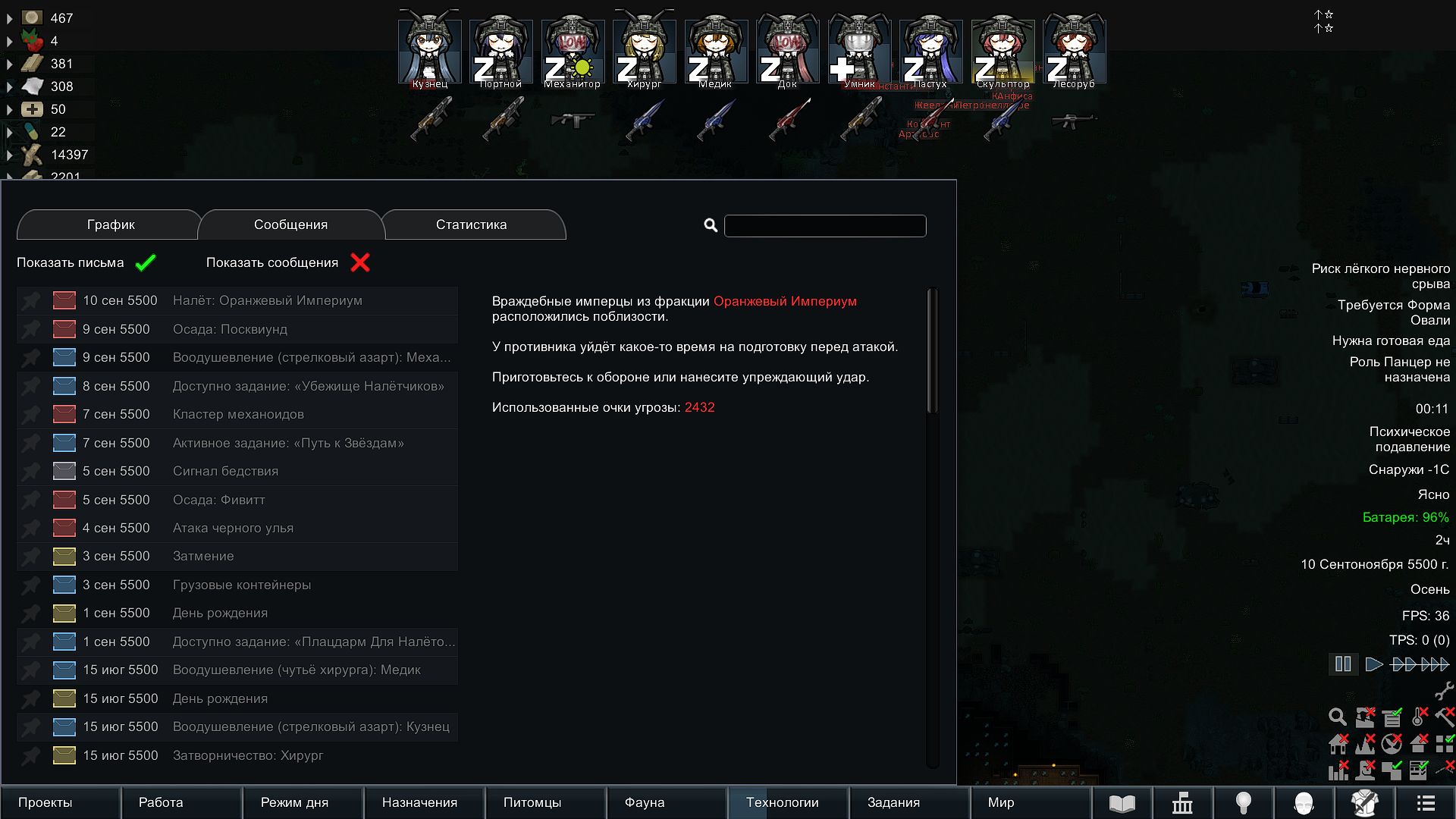Начал на неприкрытой жестокости с целью лутать как можно больше хоть сколько-то годных пешек. Фонариками народ не зазывал. В итоге 1 пешку ждал год почти в соляного, дали ребенка блять. Кроме инжинера подсовывали какое-то говно, но я терпел. Потом инженер сдох от грипа, я не расстроился. У меня было 7 пешек. Потом взял какой-то квест, который звучит как "на вас совершат 2 налета силой х2 примерно следующего состава через 18 часов(это было ошибкой). Дали 2 пешек типа подмоги в катафракте. 1 из этих уебков зверски кулаками отхуярил мою топ2 пешку, которую я подобрал первой ребенком 9 лет(малышарик) и лампово воспитал под 20 дальнего боя.