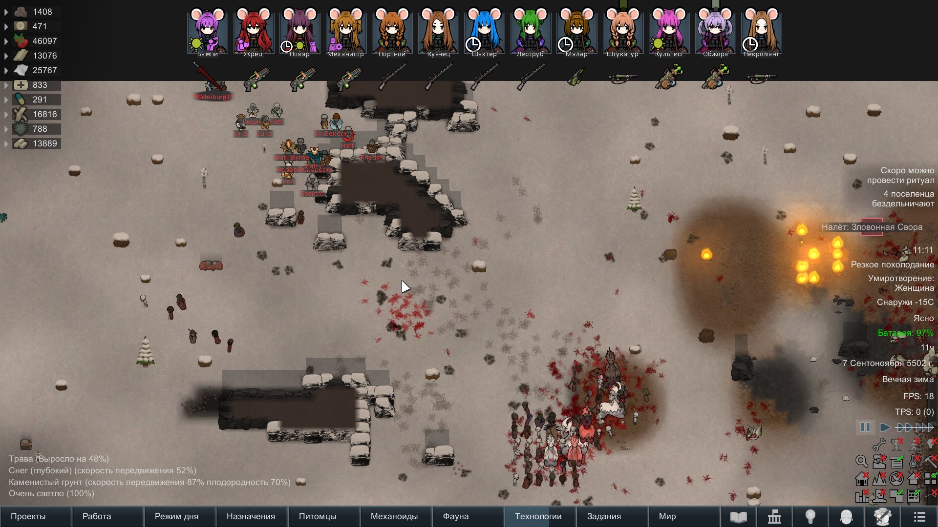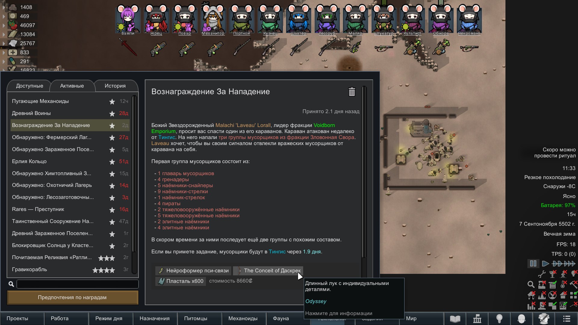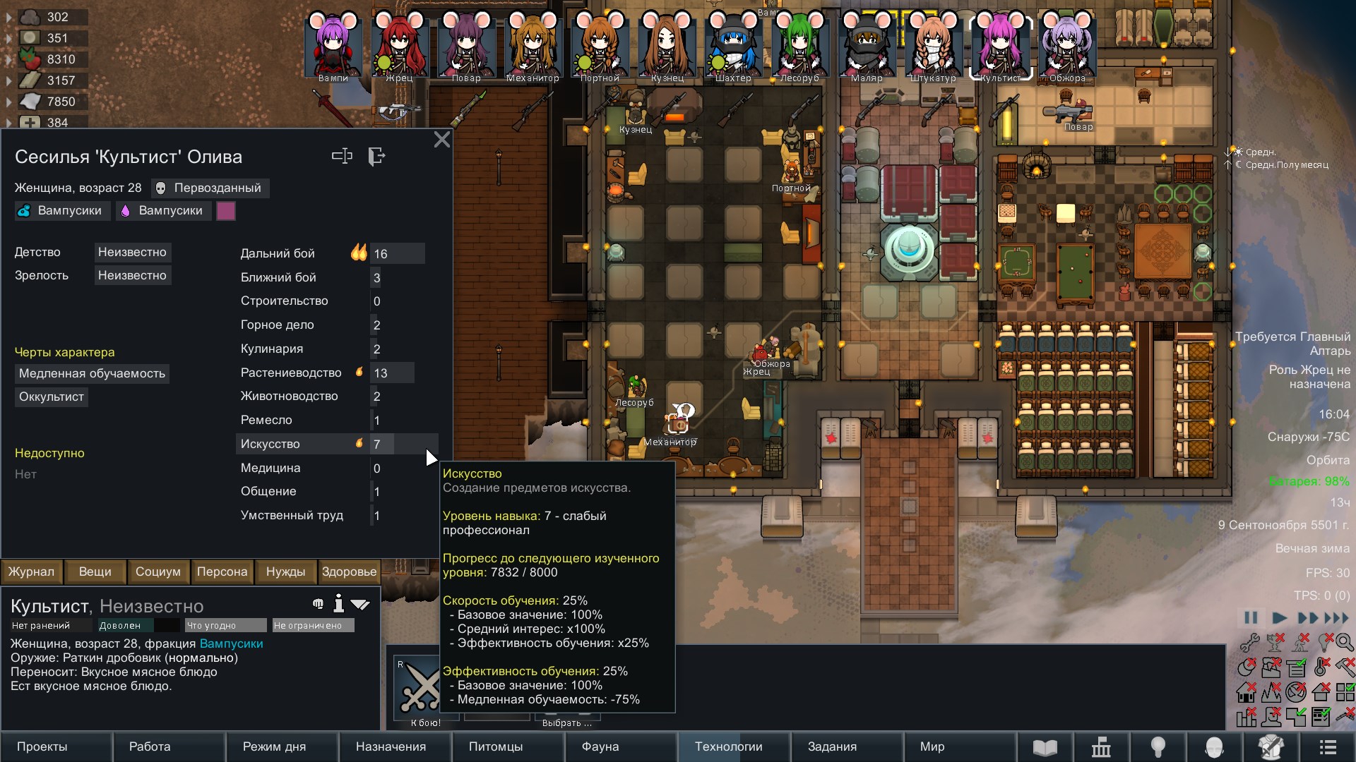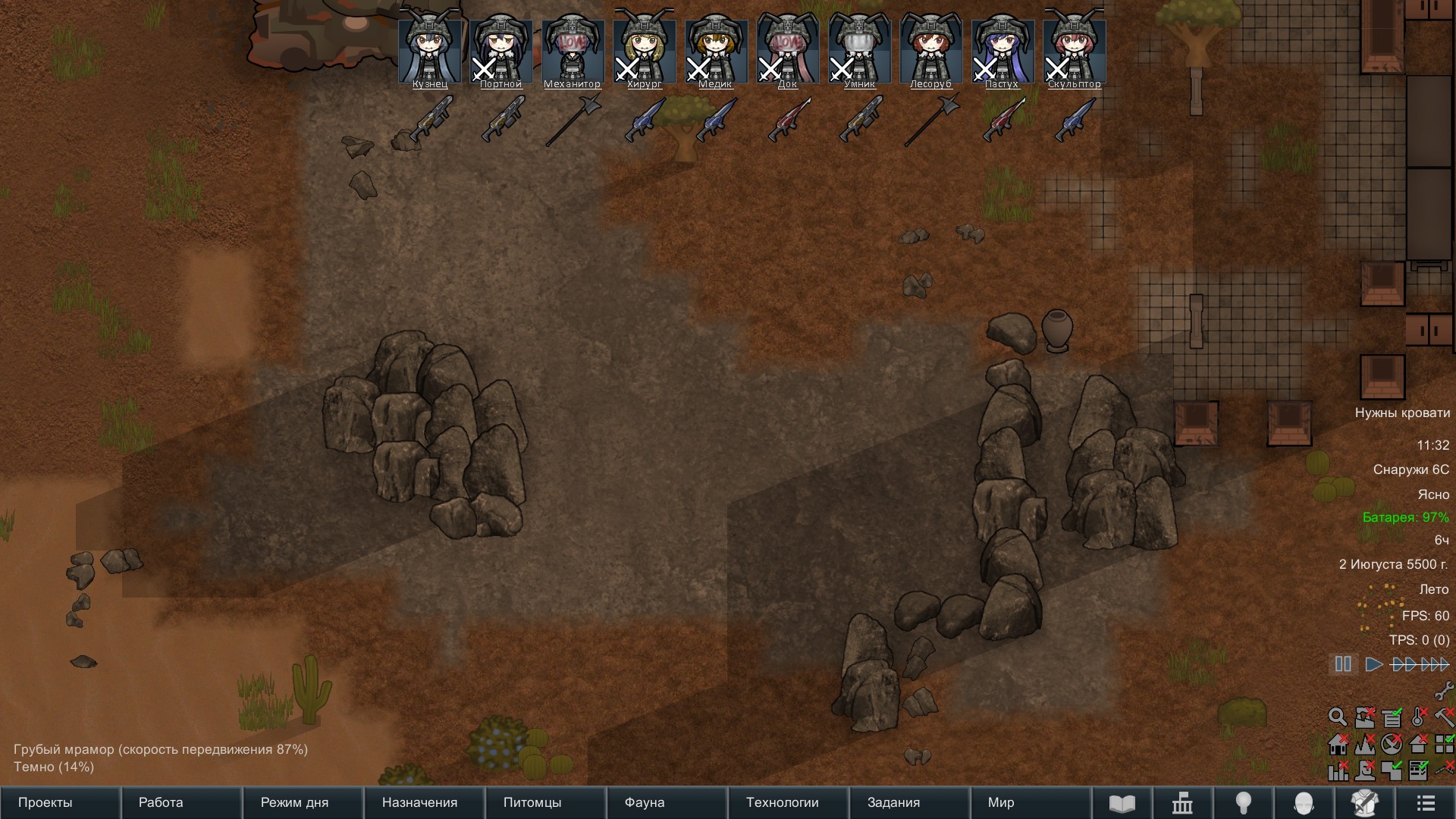 Начал на неприкрытой жестокости с целью лутать как можно больше хоть сколько-то годных пешек. Фонариками народ не зазывал. В итоге 1 пешку ждал год почти в соляного, дали ребенка блять. Кроме инжинера подсовывали какое-то говно, но я терпел. Потом инженер сдох от грипа, я не расстроился. У меня было 7 пешек. Потом взял какой-то квест, который звучит как "на вас совершат 2 налета силой х2 примерно следующего состава через 18 часов(это было ошибкой). Дали 2 пешек типа подмоги в катафракте. 1 из этих уебков зверски кулаками отхуярил мою топ2 пешку, которую я подобрал первой ребенком 9 лет(малышарик) и лампово воспитал под 20 дальнего боя.