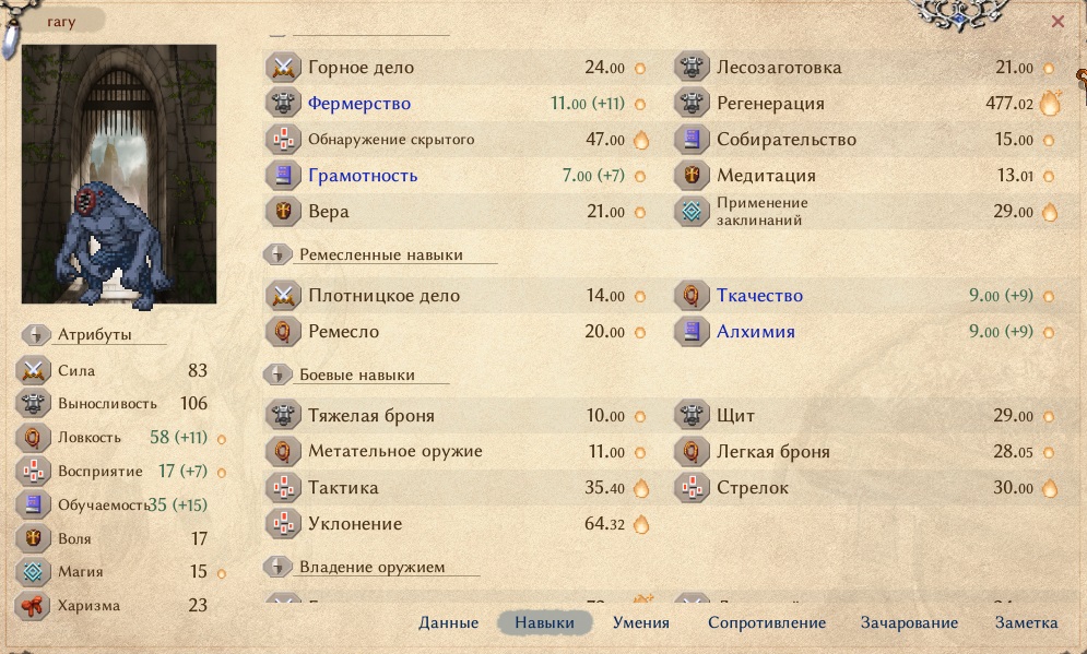 Блядь, вот откуда я без вики должен знать, что своих бичар можно все это время было тренировать, выдавая стипуху на учебу? Олсо захоботил уникальную павшую хероту через яйцо, хз правда зачем, заклы интересныее у нее есть, но в остальном растить с порога 10 аттрибутов опять, когда всяких стартер бомжей уже до 80 докачал, жалко выгонять.