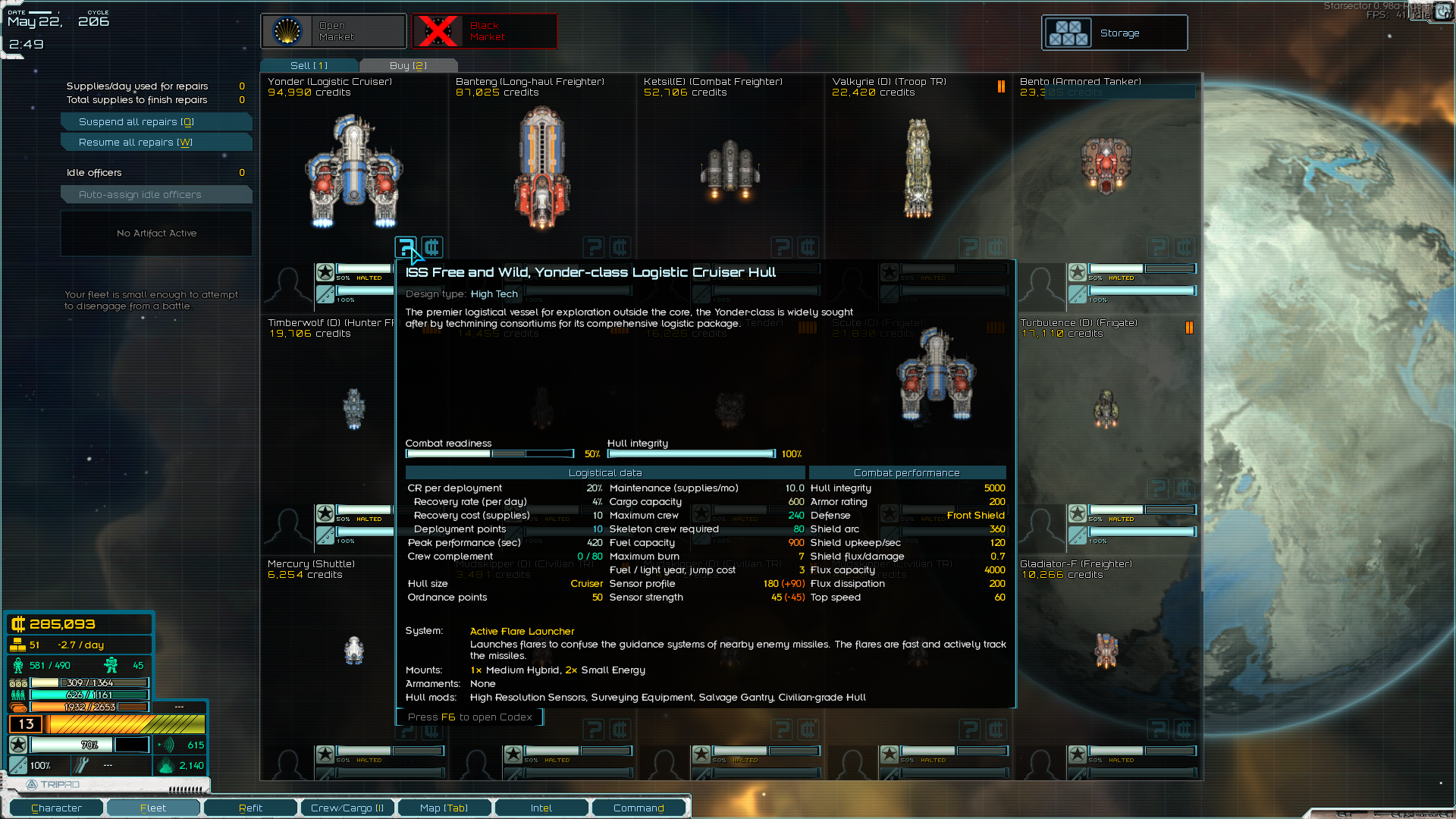 Начал новую катку - так, обкатать пару новых модов, что я никогда не пробовал перед НГ. Тем паче, что Пепл и Терраформинг к НГ как раз обновы выпустят. Начал довольно бодро - полетал туда-сюда, потом в первом же задании на скан пробки за порогом Ядра наткнулся на шахтёра, на которого напрыгнул ИИ флот - помог, налутал альфу и пару ядер поменьше, загнал, потом несколько "принесиподаев" в пределах ядра - и у меня уже пол миллиона на кармане. По дороге выпало пара заданий на воровство и покупку кораблей - и я стал владельцем 14-го Сандера, диабловского лёгкого авианосца и Виковского фрегата. У ДА же закупил ещё 2 фрегата. Потом начал искать - чем бы снарядиться в вылазку на границу сектора - сразу 3 задания в том районе. Нашёл Йондер - Абсолютно беззащитное гражданское корыто, но зато со всеми утилитарными модами, что мне нужны. Ещё и вместительные трюм с баками. На сдачу взял Мародёр - очень быстрый, но очень дрищавый пиратский эсминец. Зато дешёвый, как в деньгах, так и в эксплуатации. Ну и Сколу - опять подвернулась, теперь этот фрегат - уже традиция в моём флоте. Да и в целом, это "омен бедного человека", что в целом неплохо.