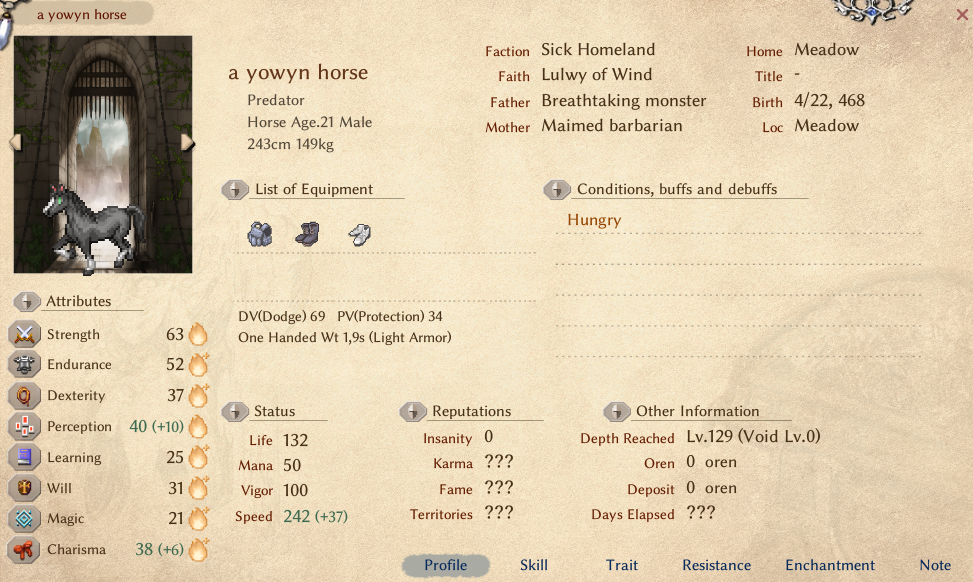 >>50534659 >Как в Элин происходит вербовка? Можно: - чесать щёткой(скилл приручение) - болтать(скилл переговоры, дополнительно могут открыться любимые вещи) - подарить любимую вещь - скормить еду обмазанную любовным зельем Нужно набить 75 отношений и иметь харизму выше любого из основных статов вербуемого.