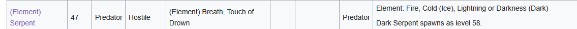 Хочу приручить дарк серпента. Вот только нефии уже за 100+лвл и хер ты его там заспавнишь, а только ради этого сливать фейм жалко. Спец драконья нефия 51 лвл, и вот хз, будет ли спавниться там дарк, ведь у него 58 лвл, как указано на вики.