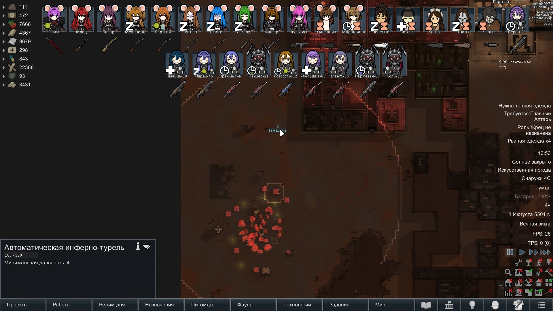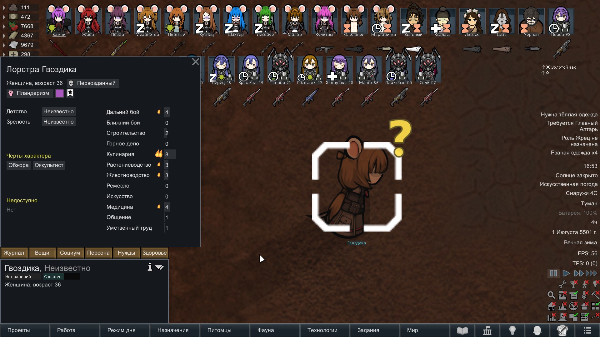 Мои флаги казуальной игры: ❗игра на меньше 220трета ❗жуки, дроп рейды, мехи, аномалия - что то из этого выключено, ибо "неприятно" ❗игра без ответственного режима с сейвами каждые 5 минут, итого колония бессмертная и загрузка при каждом неприятном моменте ❗идеологии не ради ролеплея, а ради оказуаливания рана, типа офнут дебаф муд на трупы, абуз праздников ❗загрязнения офнуты ❗килбоксы из зомбаков и пыли ❗редактор пешек. это вообще пизда, накручу 15+ навыков, живучесть и бегуна, кайф играть че ❗стартовать не первозданными, с редактором генов или уже собранными типа гусара или крота